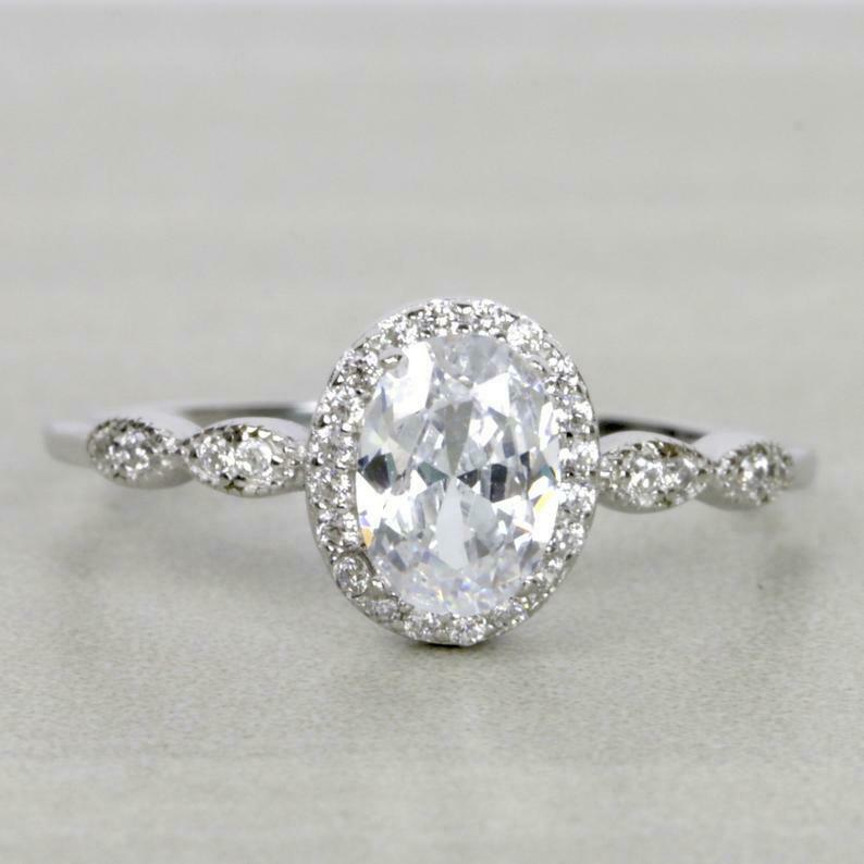 1.65ct Oval Cut Diamond Engagement Ring Halo Women Solitaire 14k White Gold Over