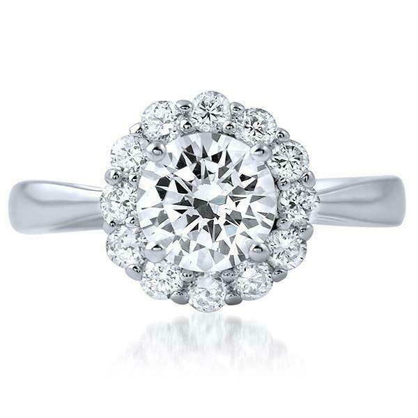 1.65ct Round Cut Diamond Engagement Ring Halo Solitaire 14k White Gold Finish
