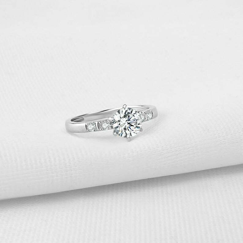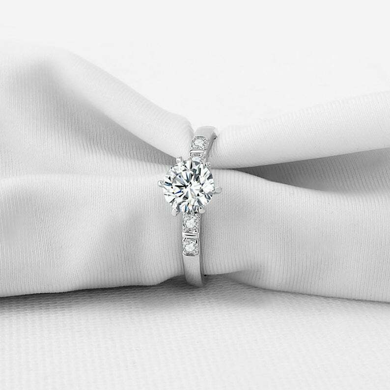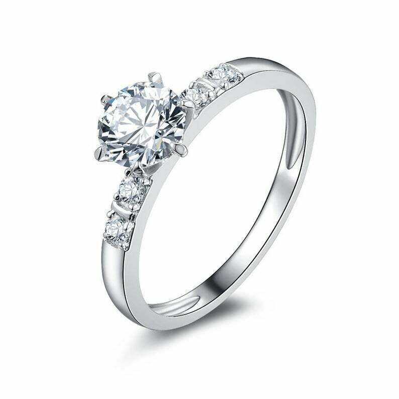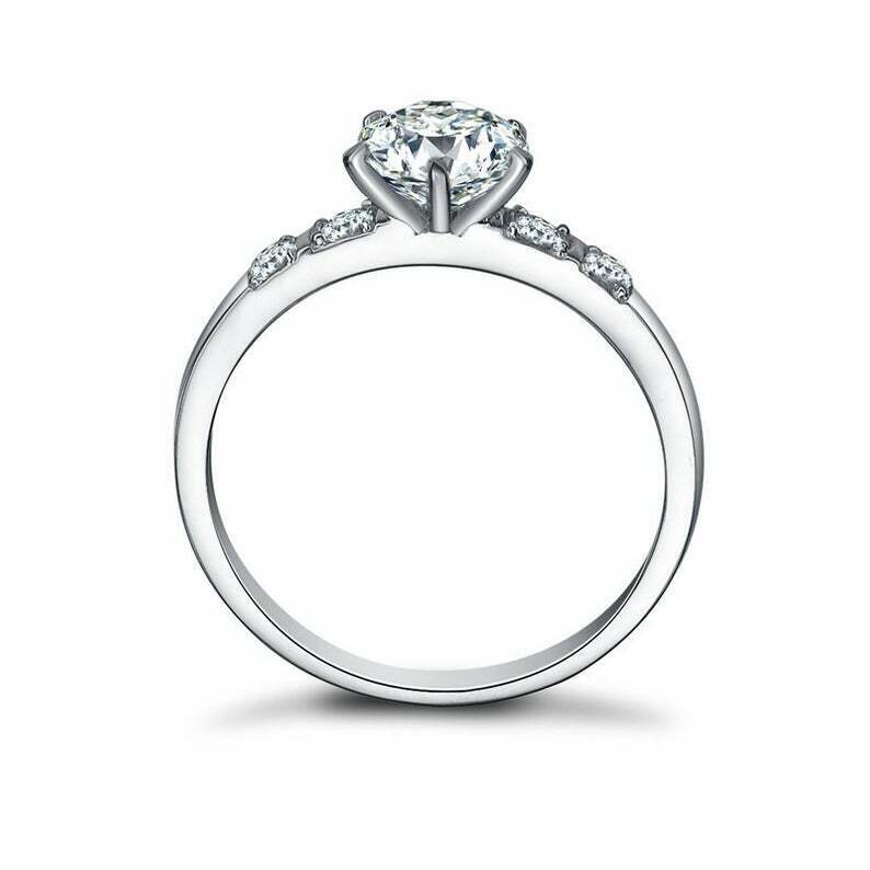 1.65ct Round Cut Diamond Engagement Ring Solitaire with Accents 14k White Gold Over