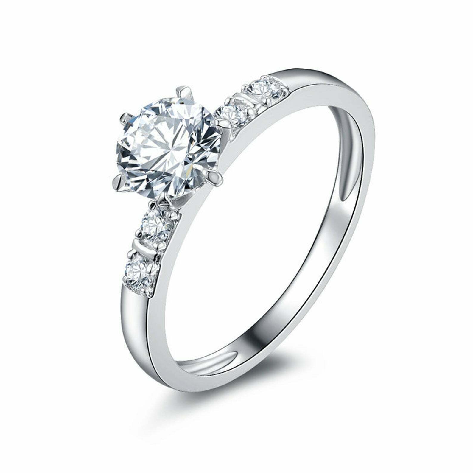 1.65ct Round Diamond Engagement Ring Solitaire with Accents 14k White Gold Over