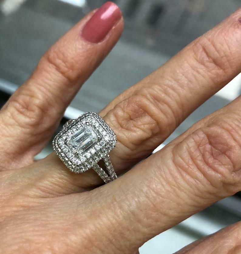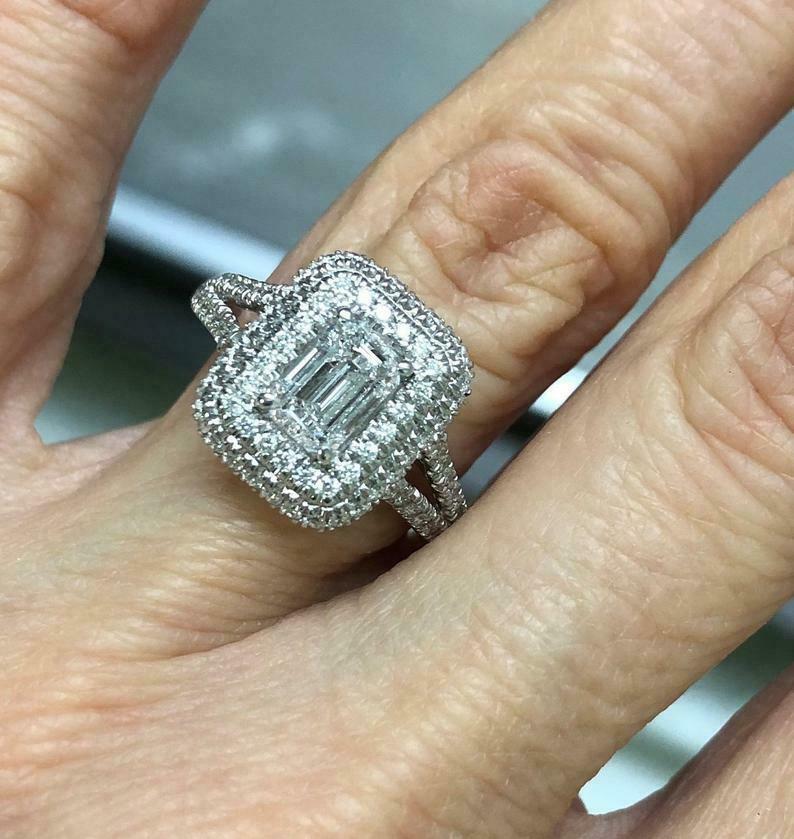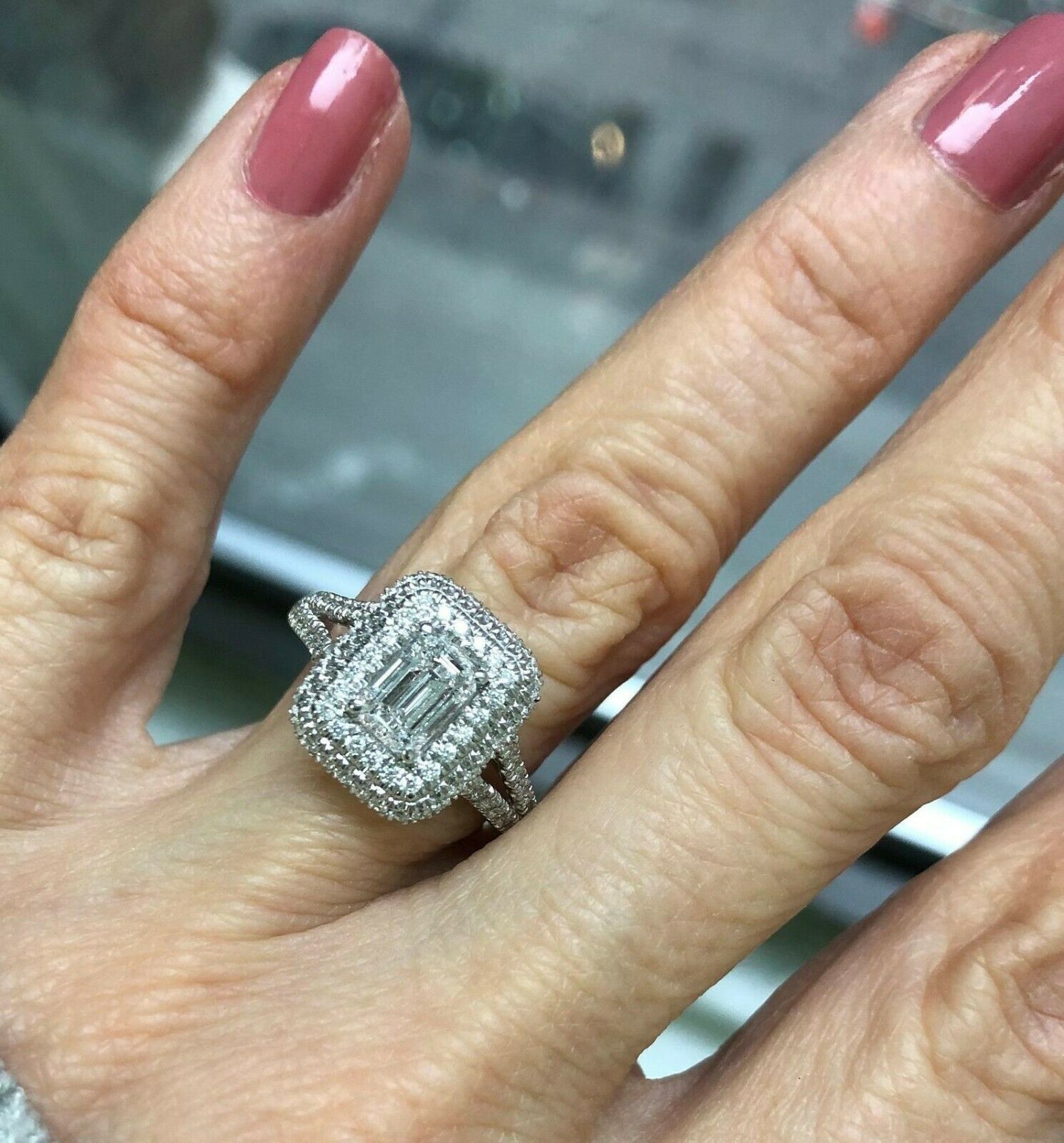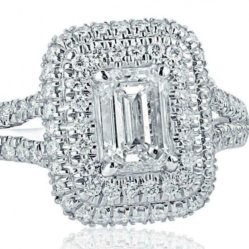 1.67ct Emerald Diamond Engagement Ring Split Shank Dual Halo 14k White Gold Over