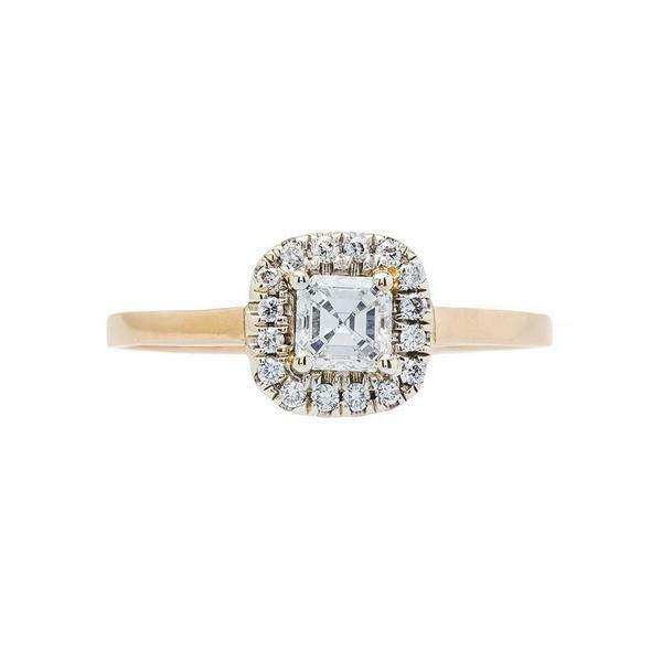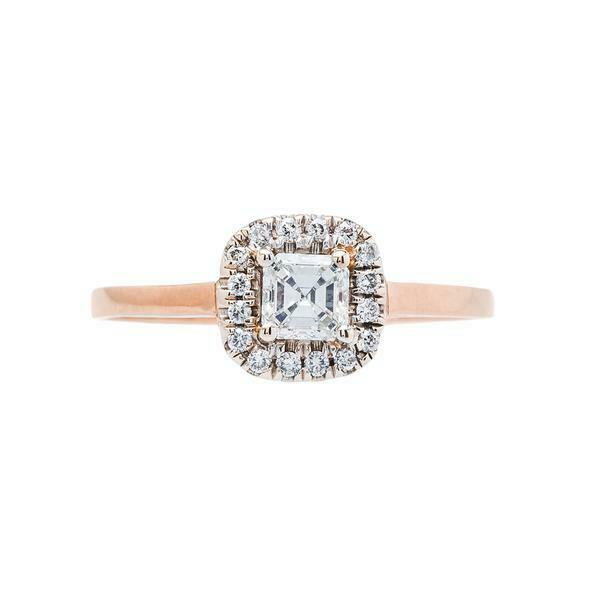 1.6ct Asscher Cut Diamond Engagement Ring Halo Solitaire 14k Rose Gold Finish