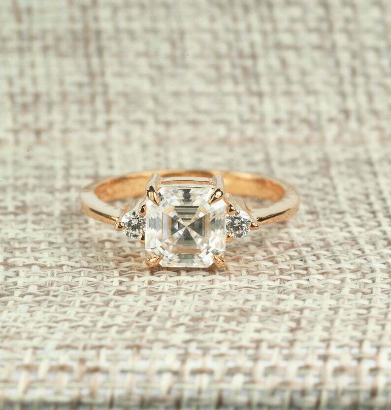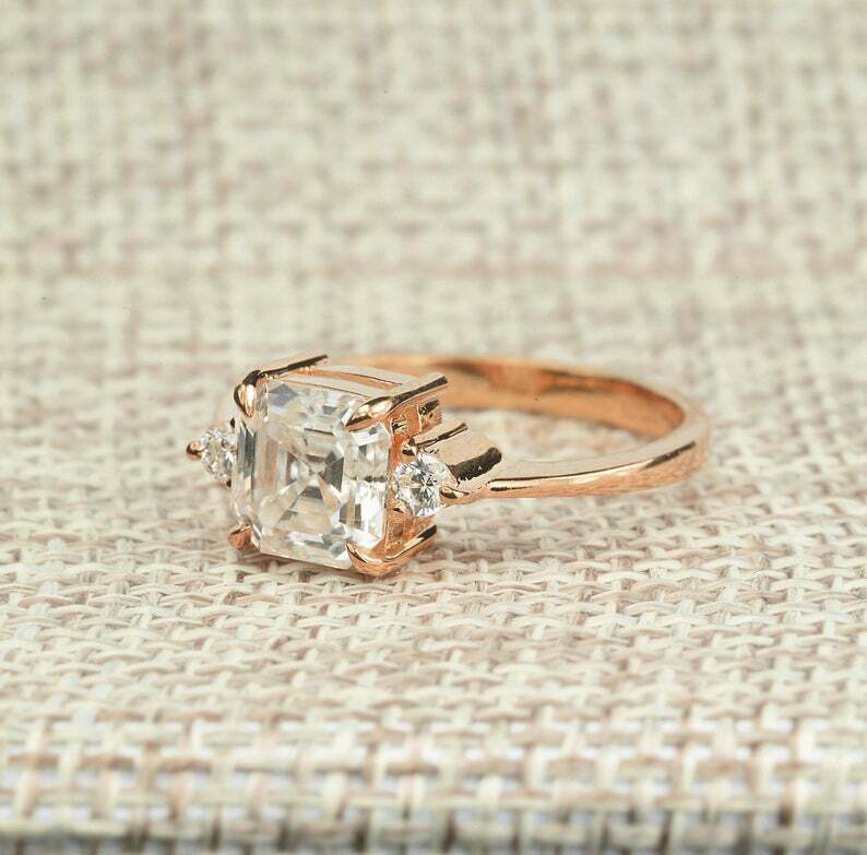 1.6ct Asscher Diamond Engagement Ring Round Accent Trilogy 14k Rose Gold Finish