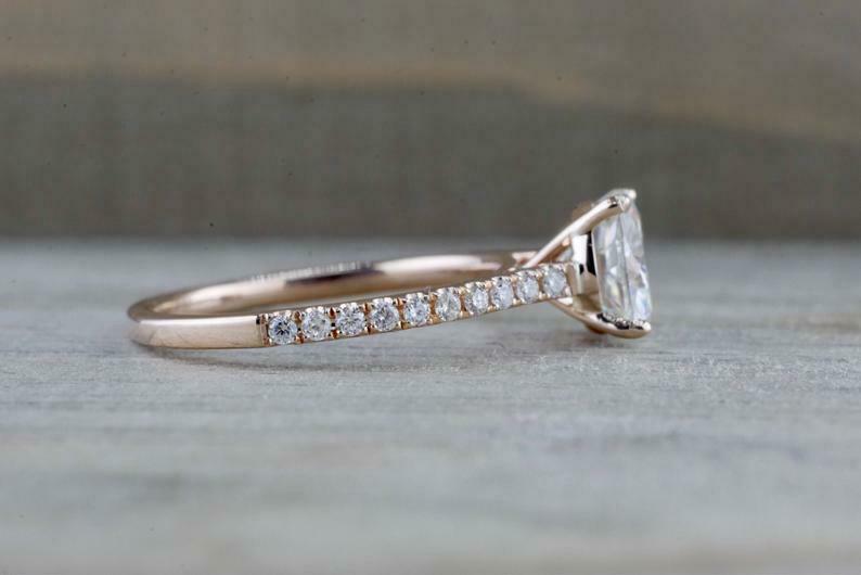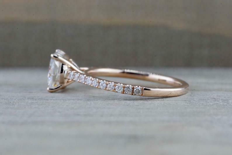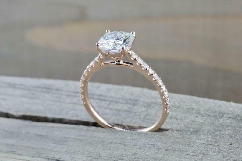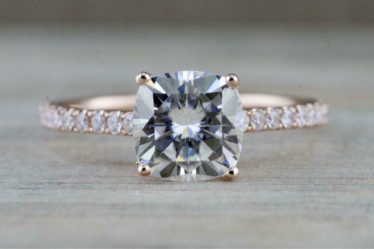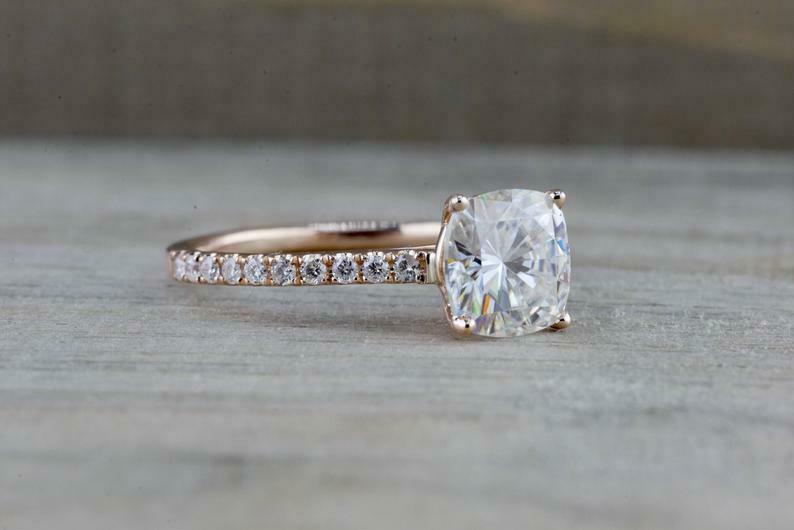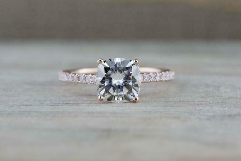 1.6ct Cushion Cut Diamond Solitaire Ring 14k Rose Gold Finish with Round Accents