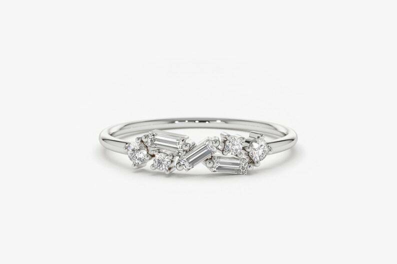 1.6ct Engagement Ring Baguette Cut Diamond Cluster Minimalist 14k White Gold Finish