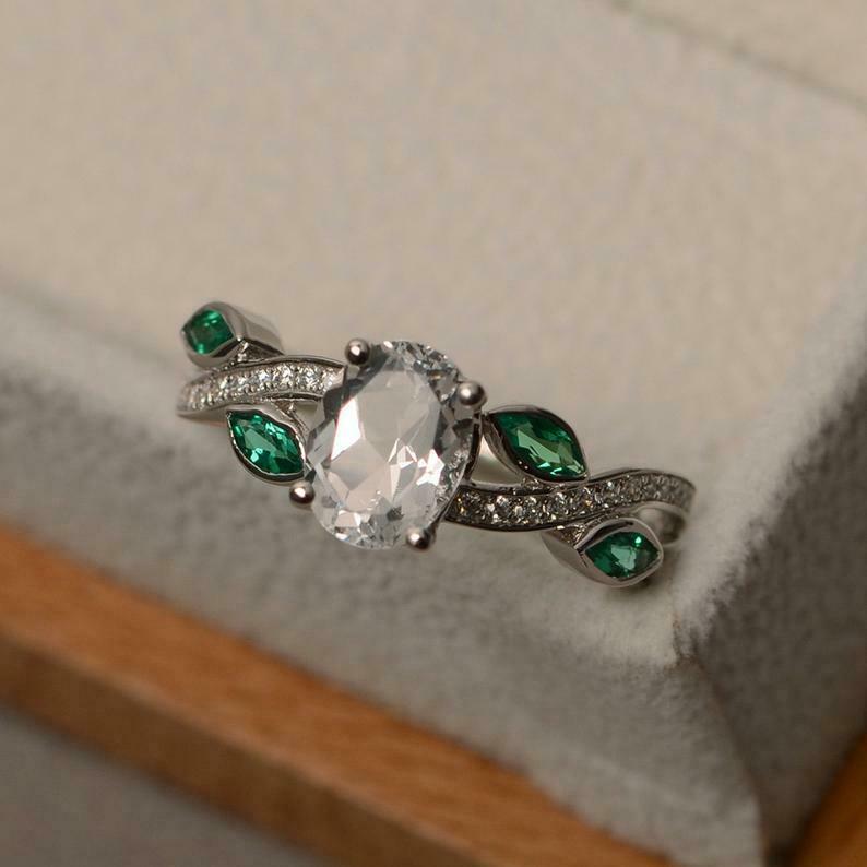 1.6ct Engagement Ring Oval Cut Diamond Leaf Accents Design 14k White Gold Finish