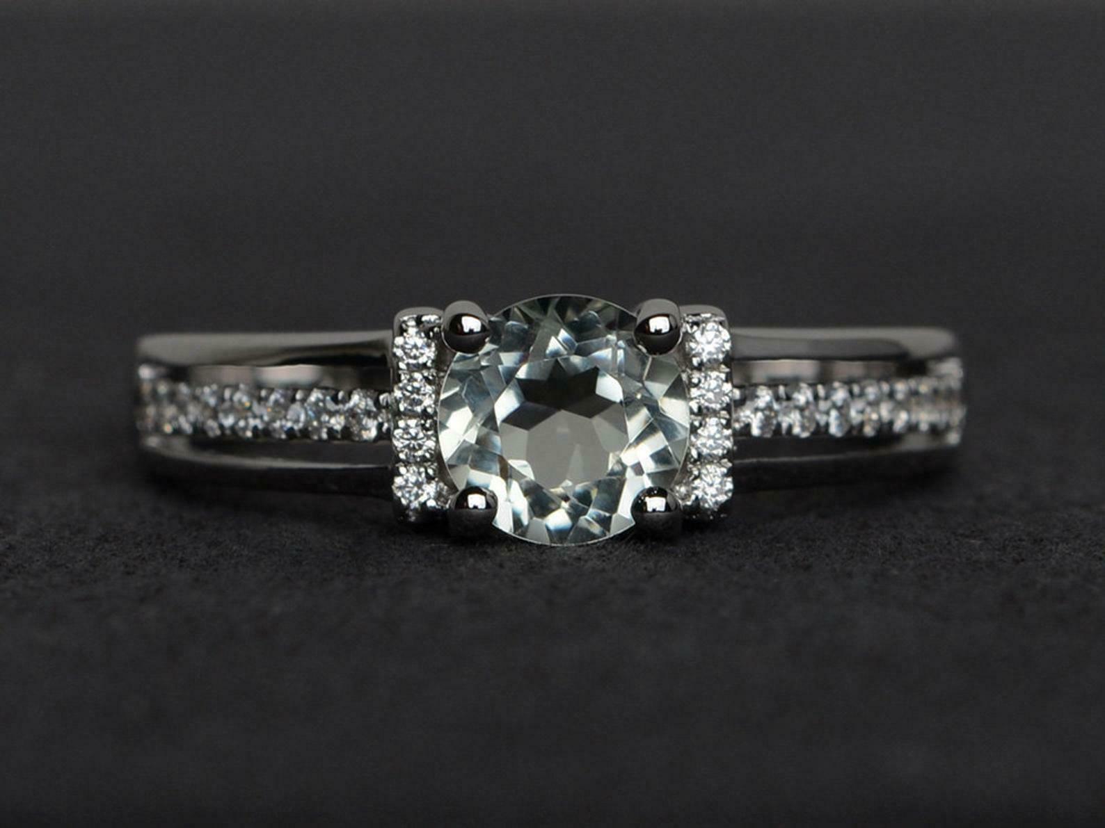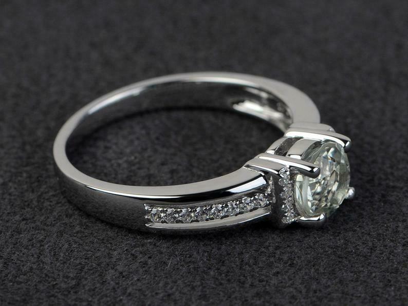 1.6ct Engagement Ring Round Cut Diamond Art Deco Design 14k White Gold Finish