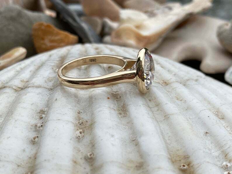 1.6ct Engagement Ring Round Cut Diamond Bezel Set Solitaire 14k Yellow Gold Over