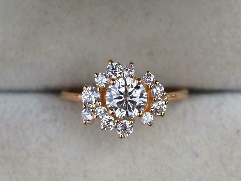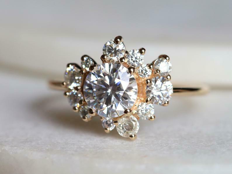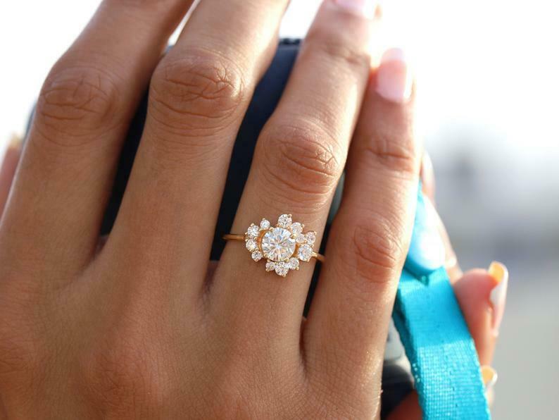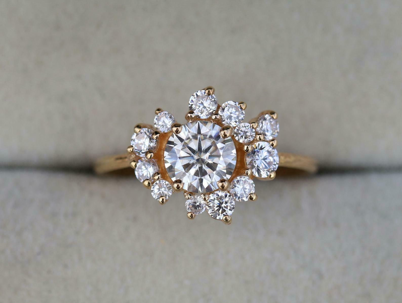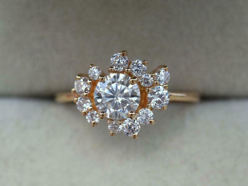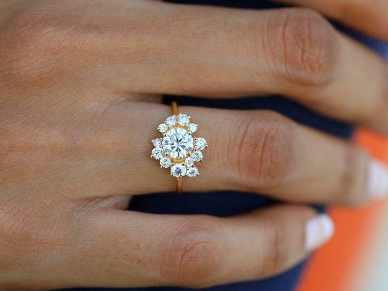 1.6ct Engagement Ring Round Cut Diamond Cluster Design 14k Yellow Gold Finish