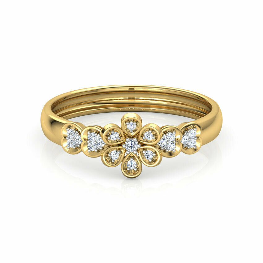 1.6ct Engagement Ring Round Cut Diamond Floral Solitaire 14k Yellow Gold Finish