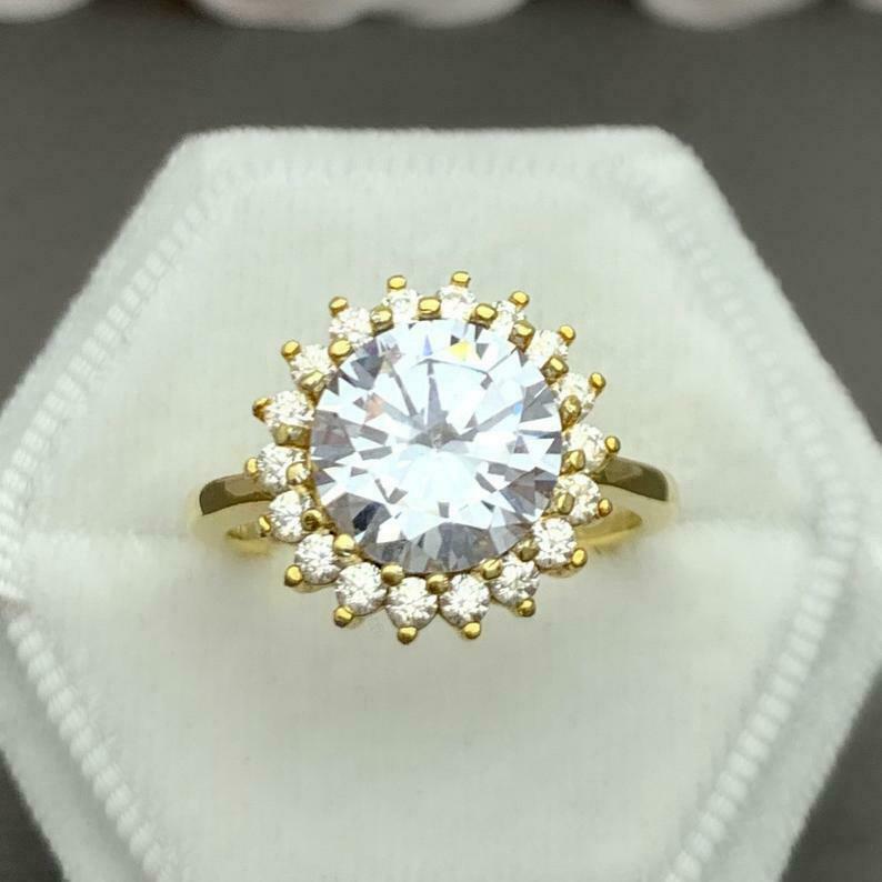 1.6ct Engagement Ring Round Cut Diamond Halo Floral Design 14k Yellow Gold Finish