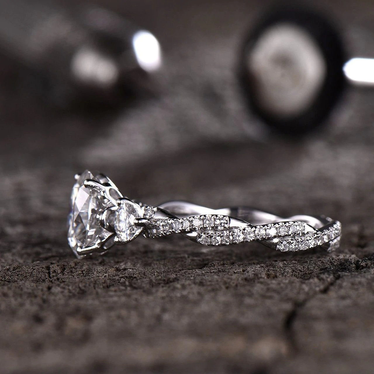 1.6ct Engagement Ring Round Cut Diamond Twisted Infinity 14k White Gold Finish