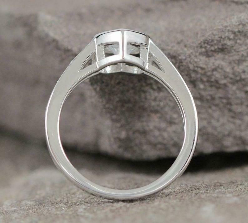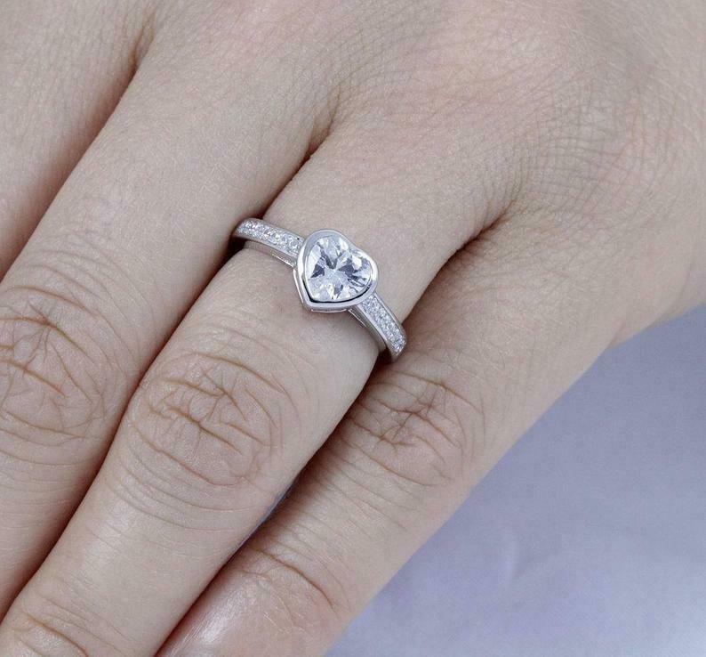 1.6ct Heart Cut Diamond Accented Bezel Set Engagement Ring 14k White Gold Finish