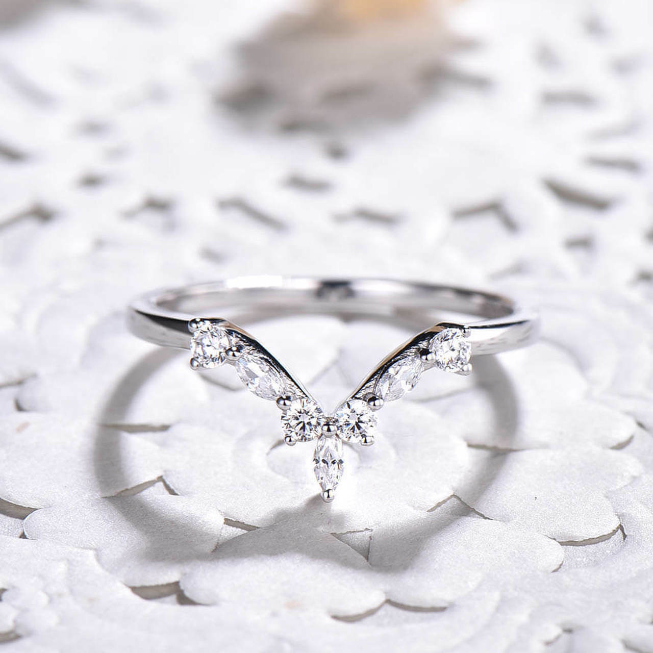 1.6ct Marquise Cut Diamond Engagement Ring Curved Crown 14k White Gold Finish