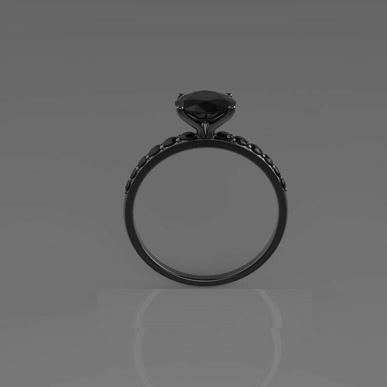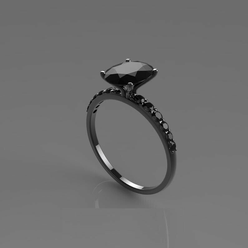 1.6ct Oval Cut Black Diamond Round Accent Solitaire Ring 14k Black Gold Finish