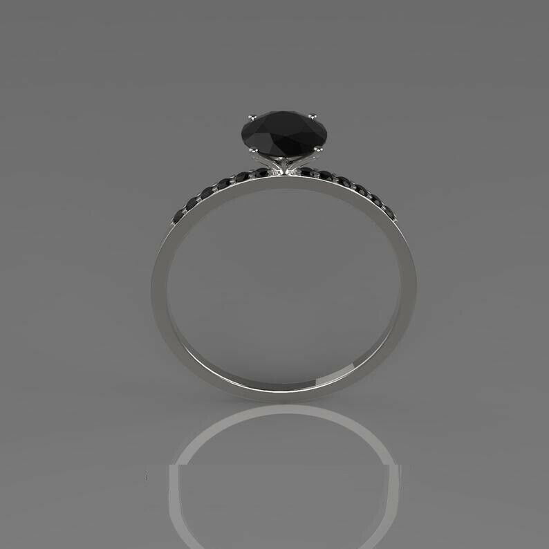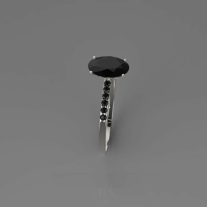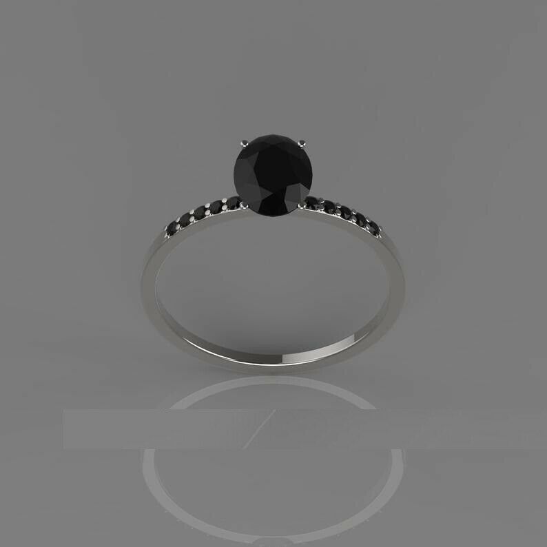 1.6ct Oval Cut Black Diamond Round Accents Solitaire Ring 14k White Gold Finish