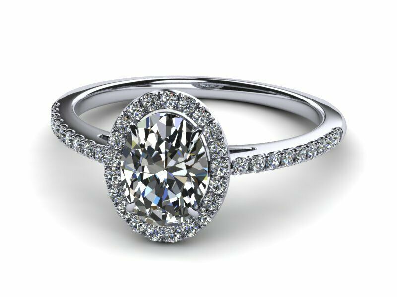 1.6ct Oval Cut Diamond Accent Halo Solitaire Engagement Ring 14k White Gold Over