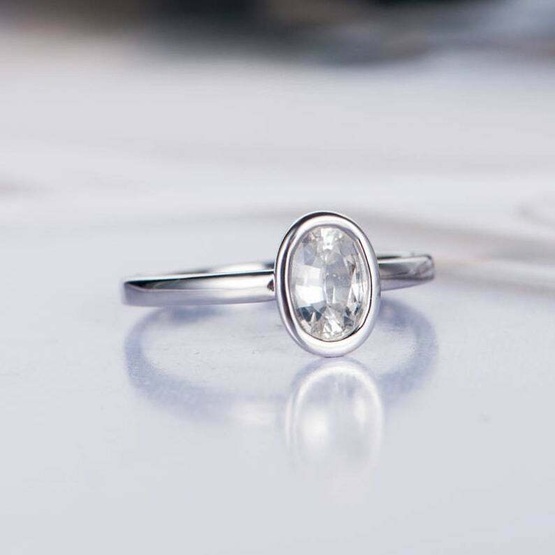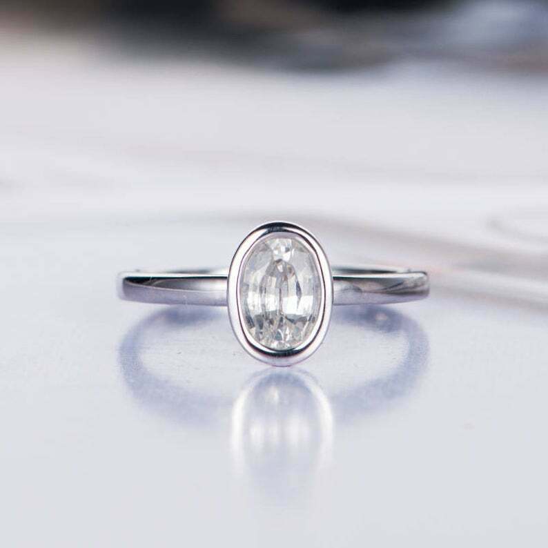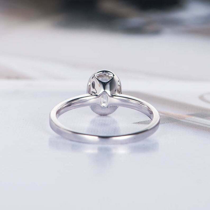 1.6ct Oval Cut Diamond Engagement Ring Bezel Set Solitaire 14k White Gold Finish