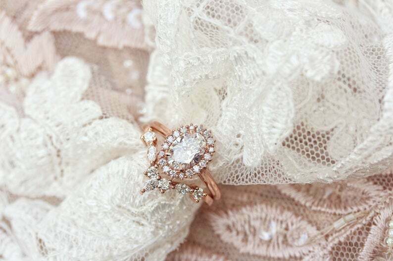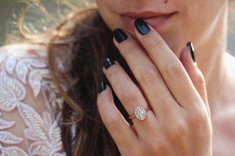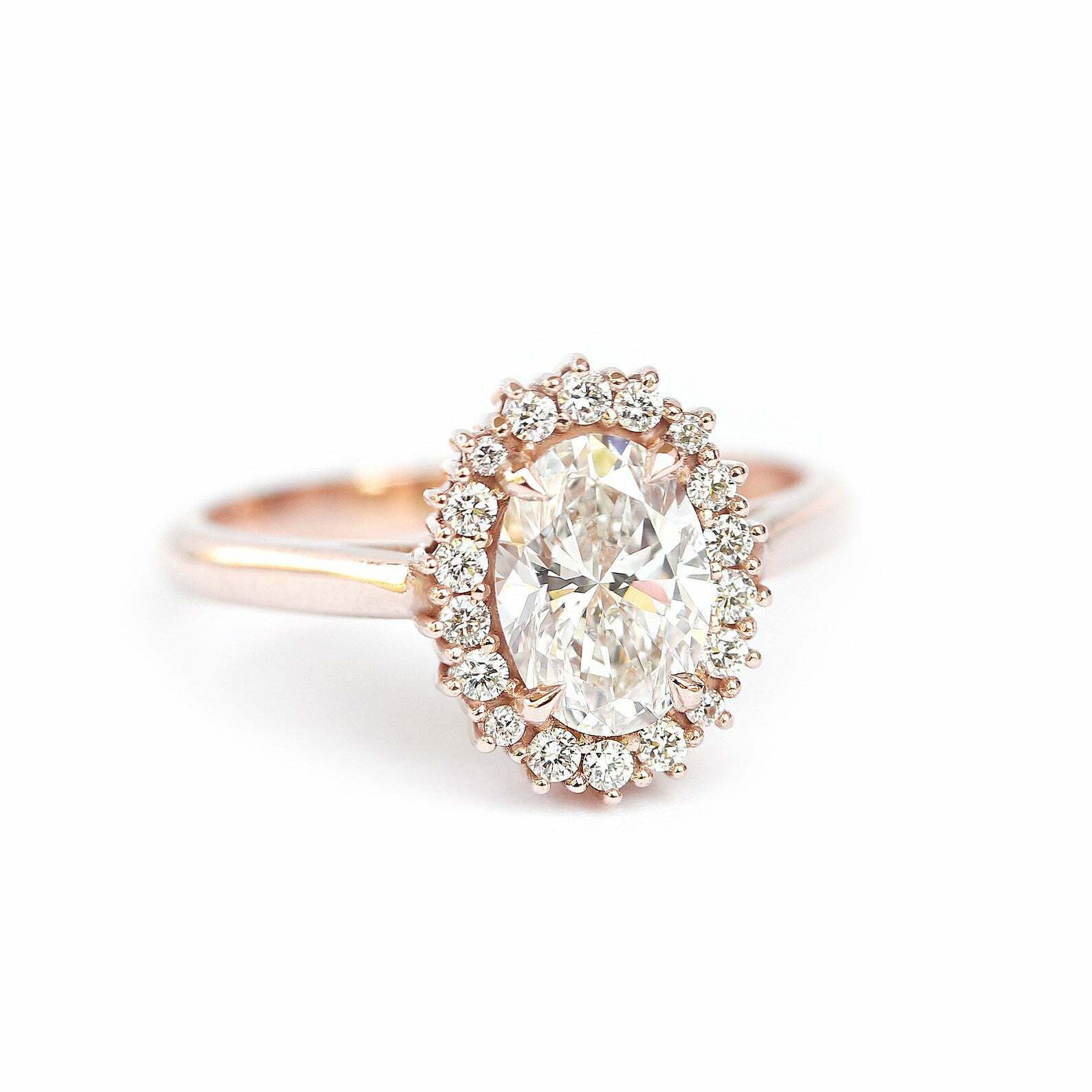 1.6ct Oval Cut Diamond Engagement Ring Halo Vintage Solitaire 14k Rose Gold Over