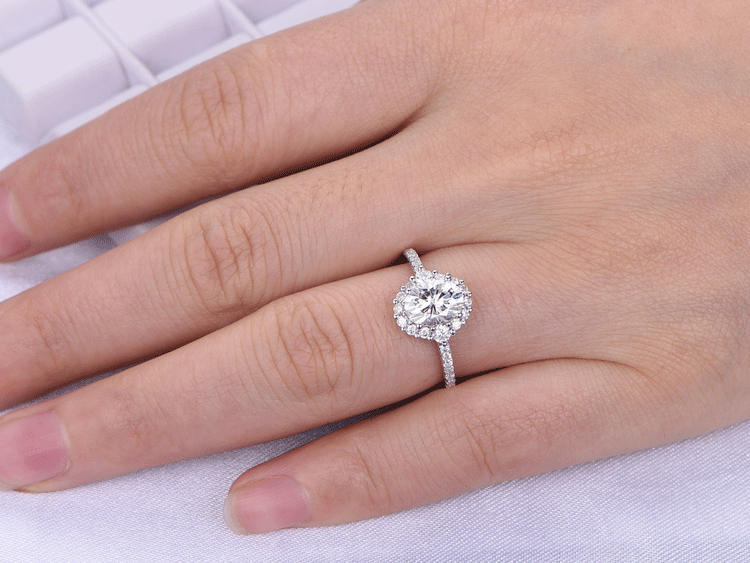 1.6ct Oval Cut Diamond Engagement Ring Halo Women Solitaire 14k WhiteGold Finish