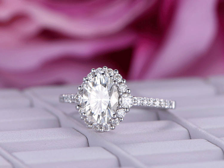 1.6ct Oval Cut Diamond Engagement Ring Halo Women Solitaire 14k White Gold Finish