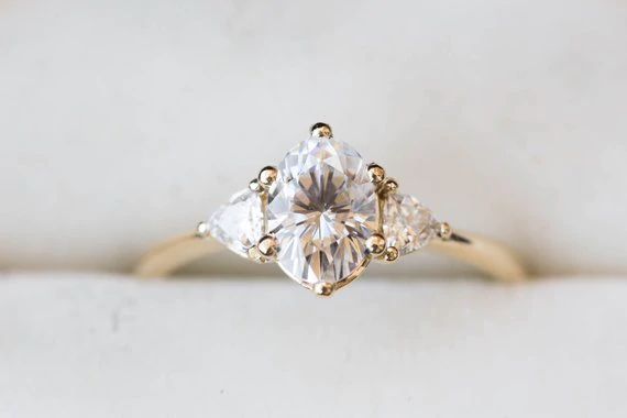 1.6ct Oval Diamond Engagement Ring Trillion Accents Trilogy 14k Yellow Gold Over