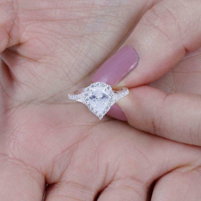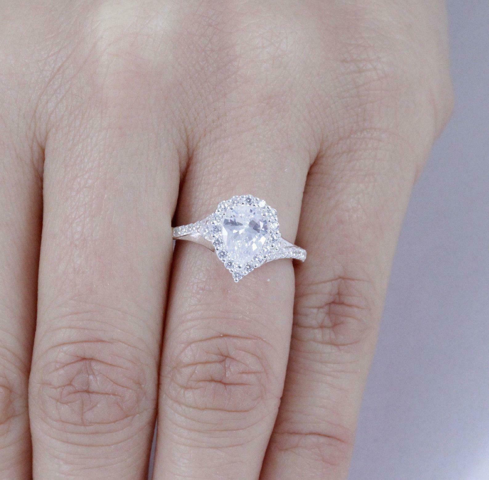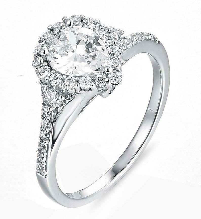 1.6ct Pear Cut Diamond Engagement Ring Round Accents Halo 14k White Gold Finish