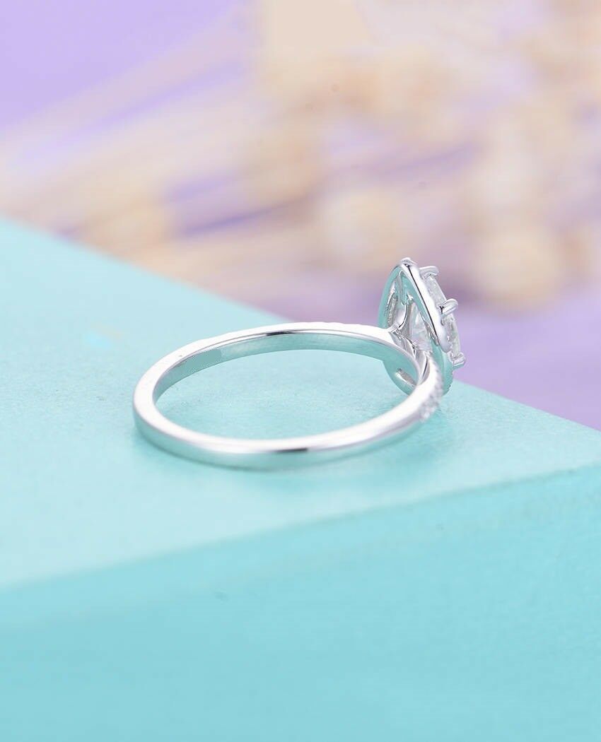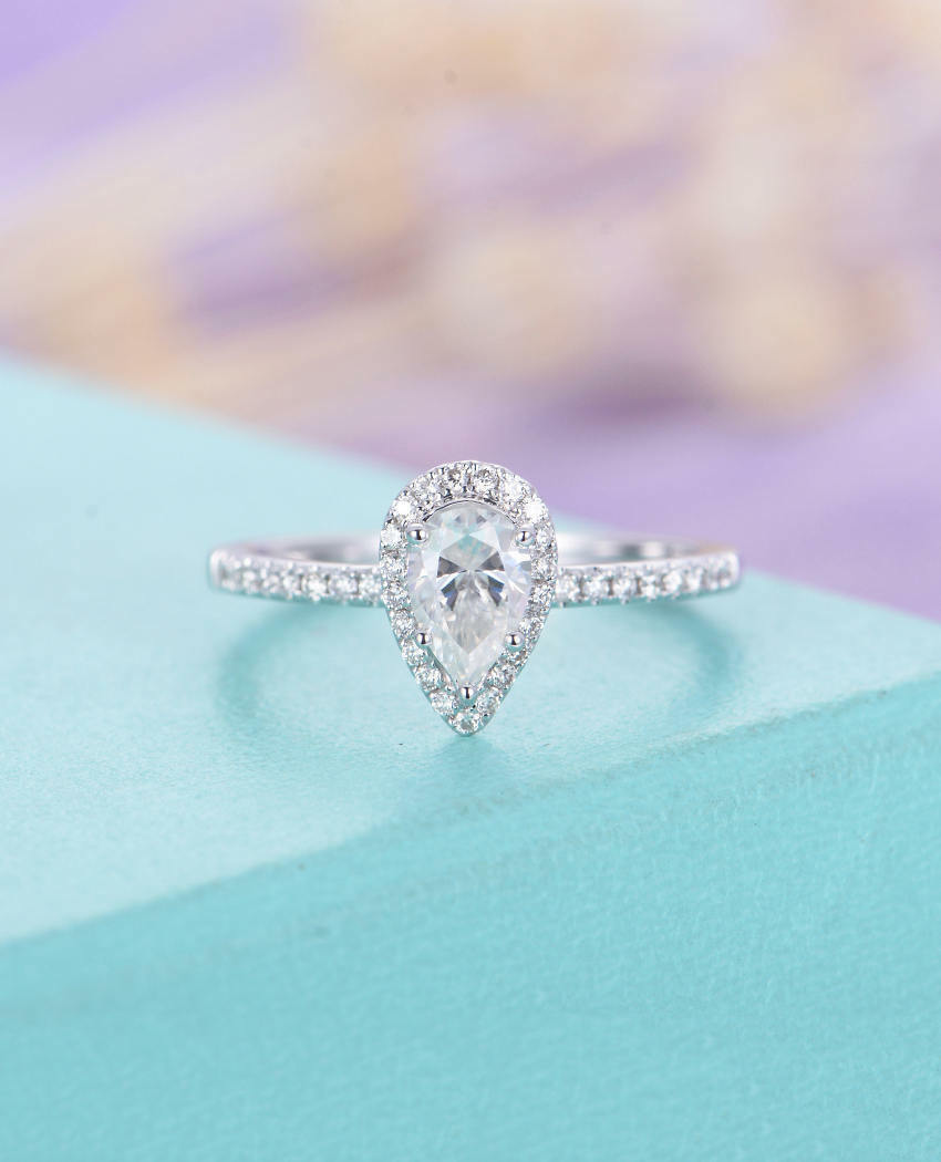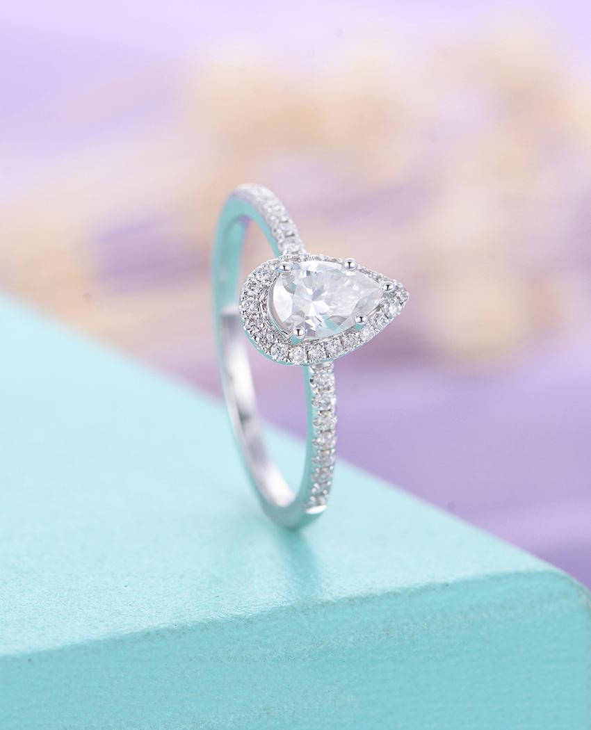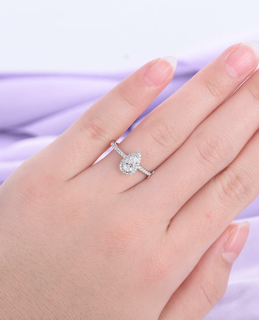 1.6ct Pear Cut VVS1 Diamond Halo Stylish Engagement Ring 14k White Gold Finish