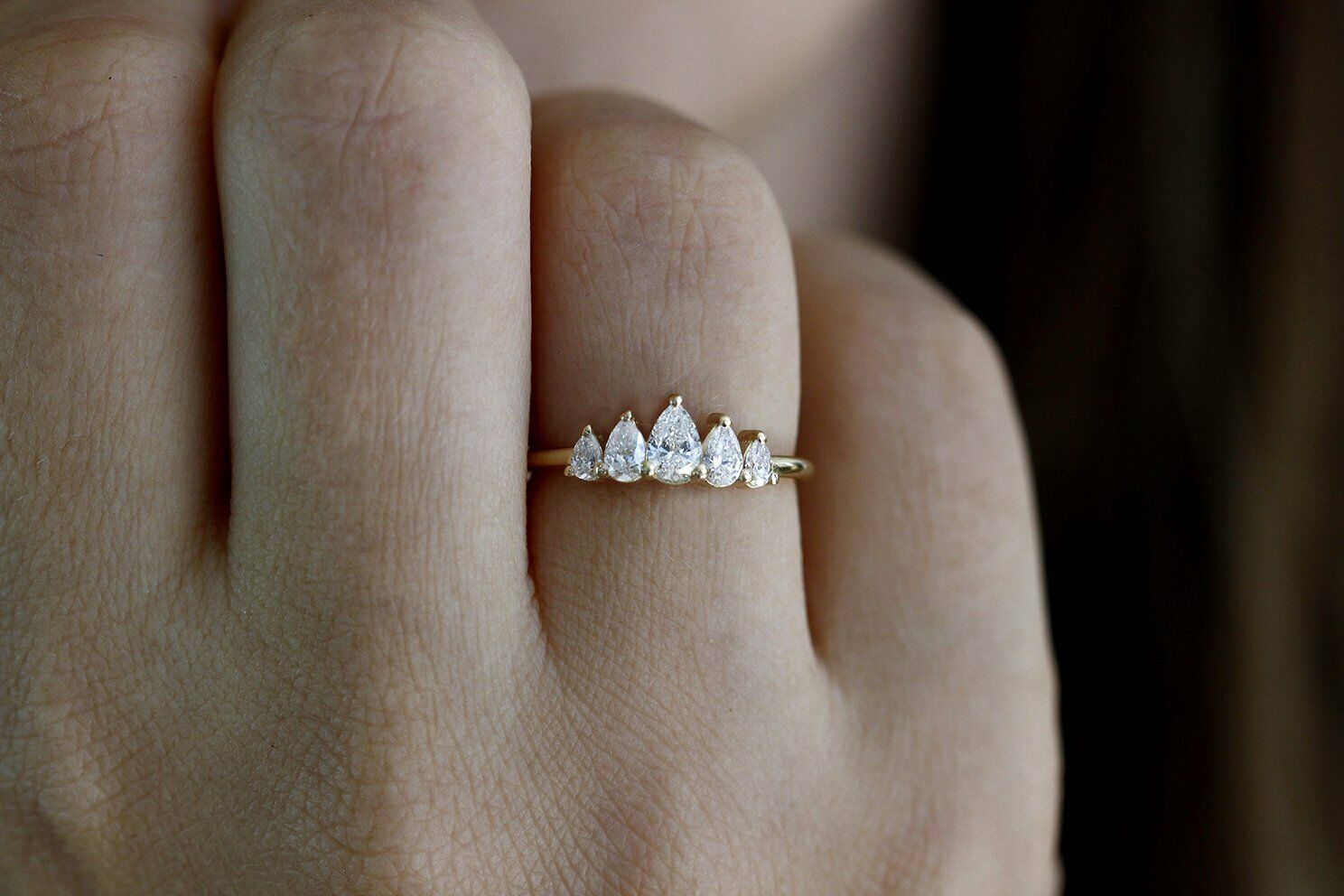 1.6ct Pear Cut VVS1D Diamond Engagement Ring 14k Yellow Gold Finish Crown Tiara