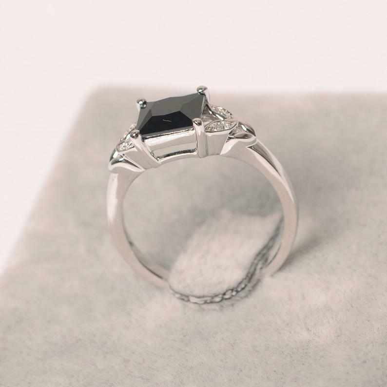 1.6ct Princess Cut Black Diamond Engagement Ring Leaf Accent 14k White Gold Over
