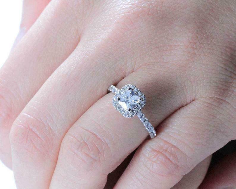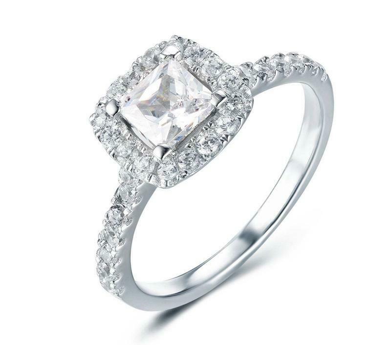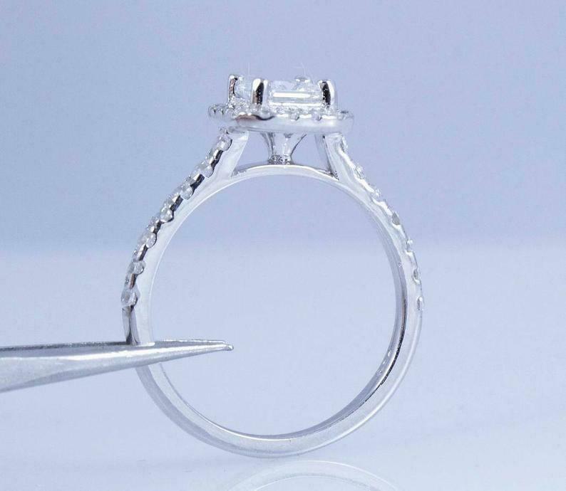 1.6ct Princess Cut Diamond Engagement Ring Solitaire Halo 14k White Gold Finish