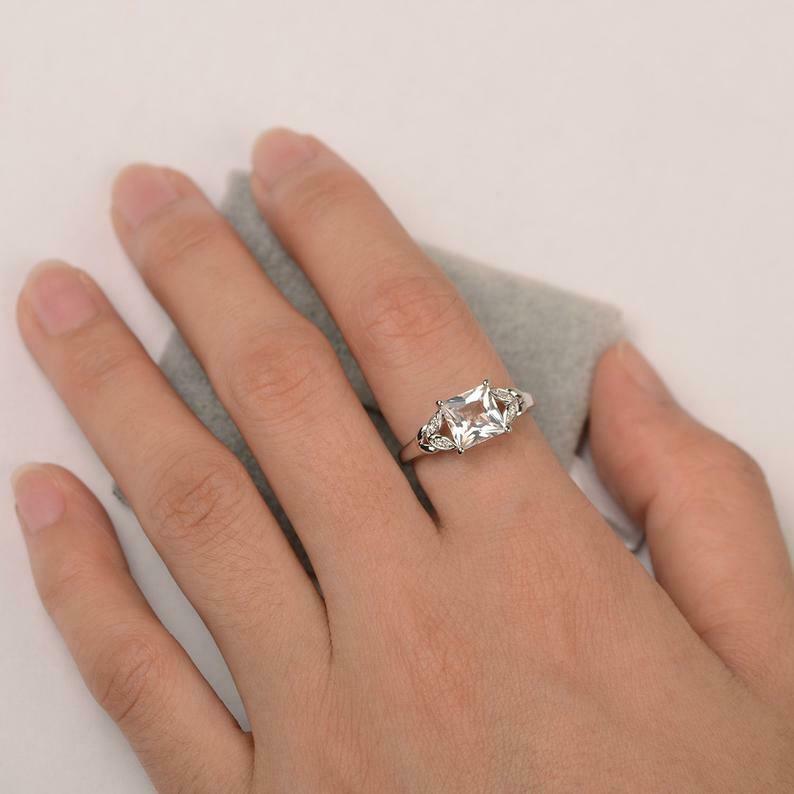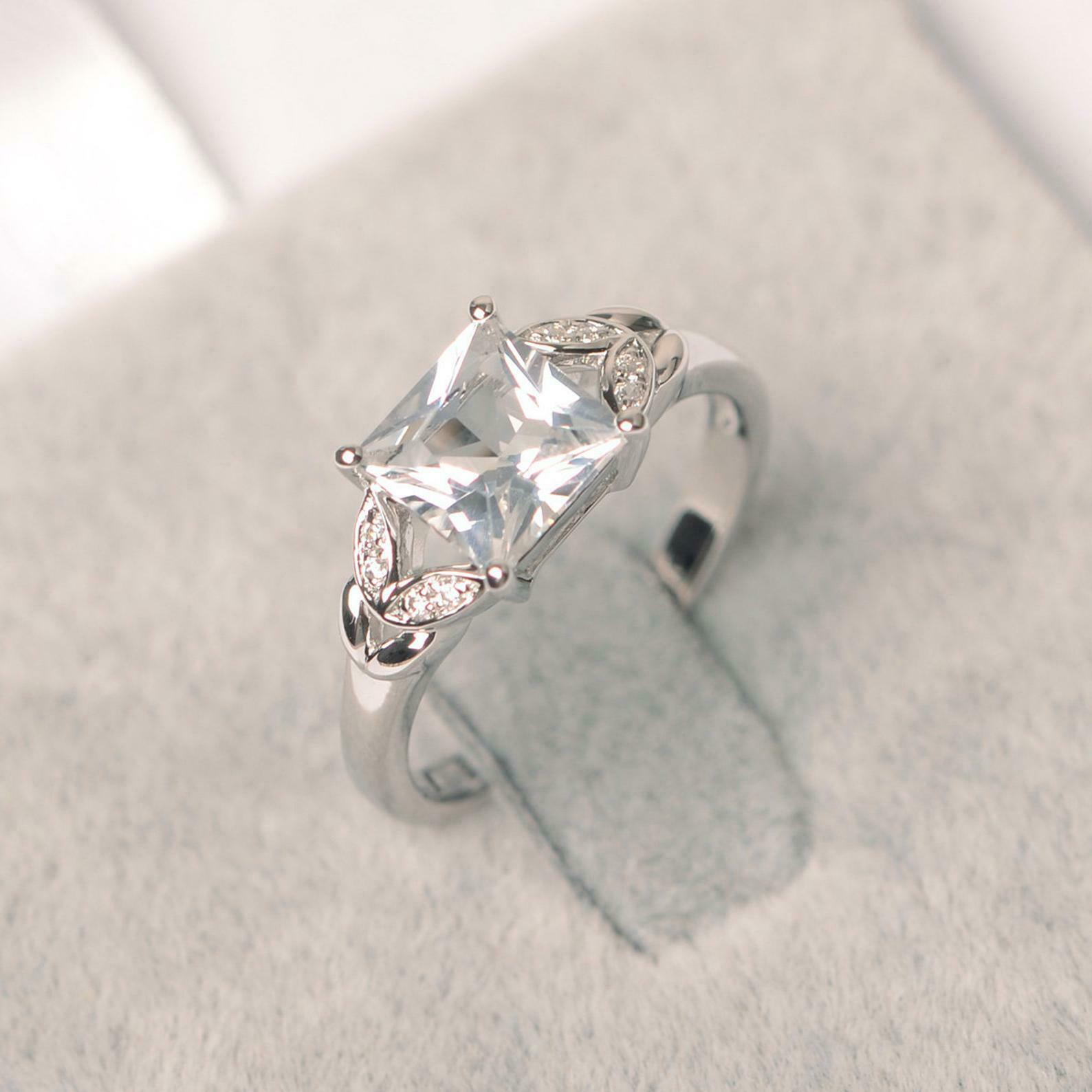 1.6ct Princess Cut VVS1D Diamond Engagement Ring Leaf Accent 14k White Gold Over