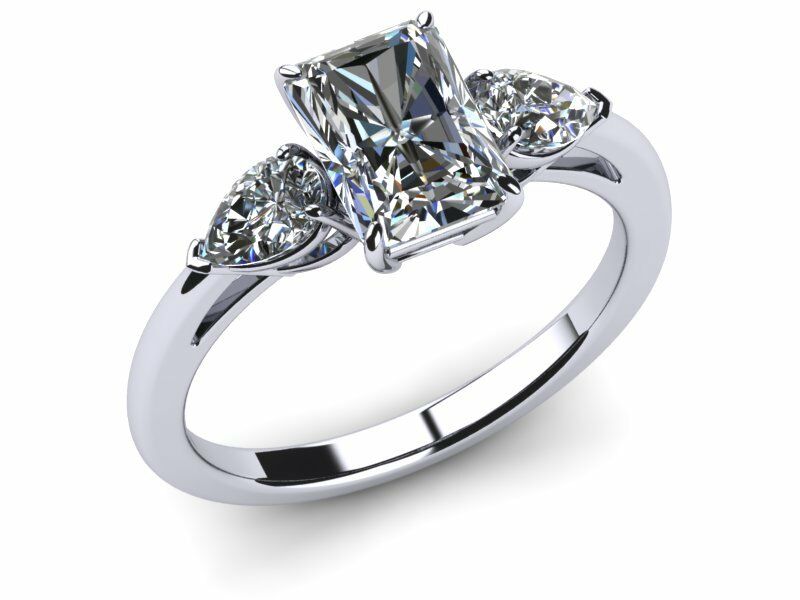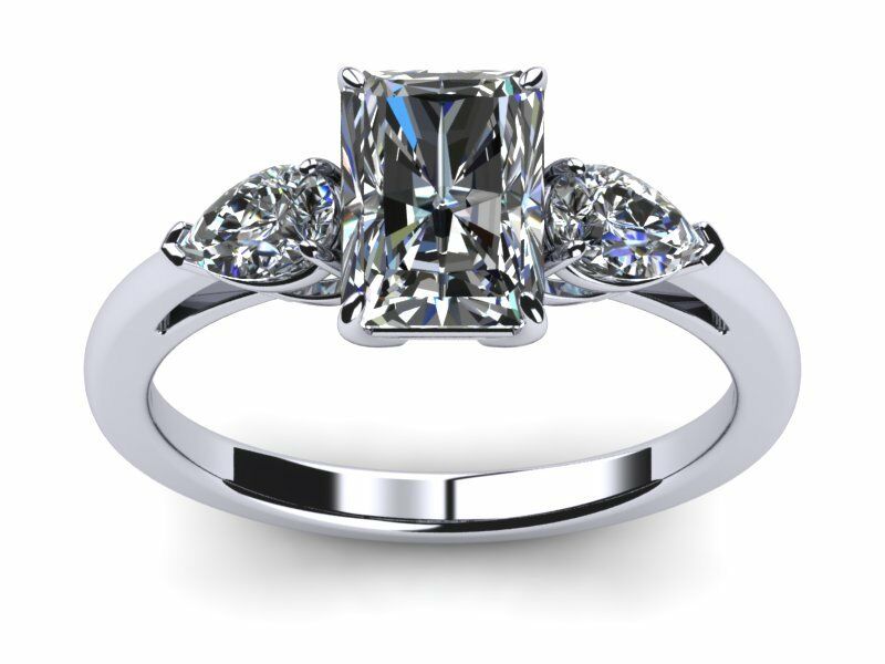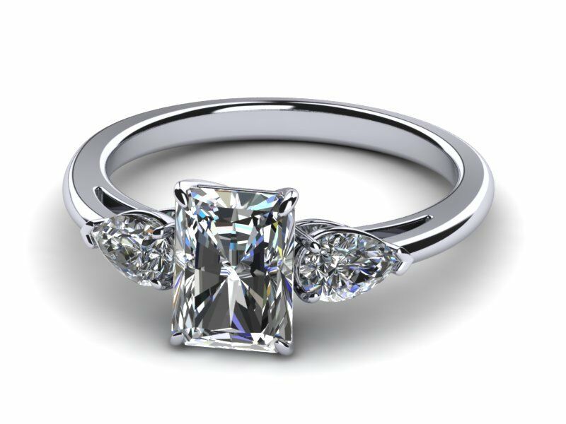1.6ct Radiant Cut Diamond Three Stone Engagement Ring 14k WhiteYell Gold Finish