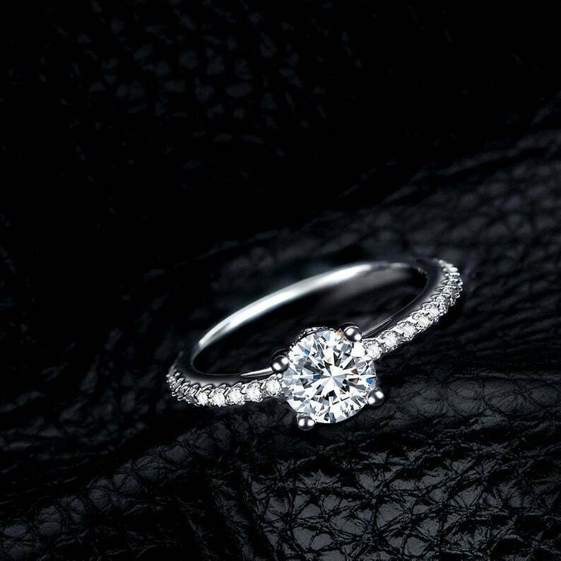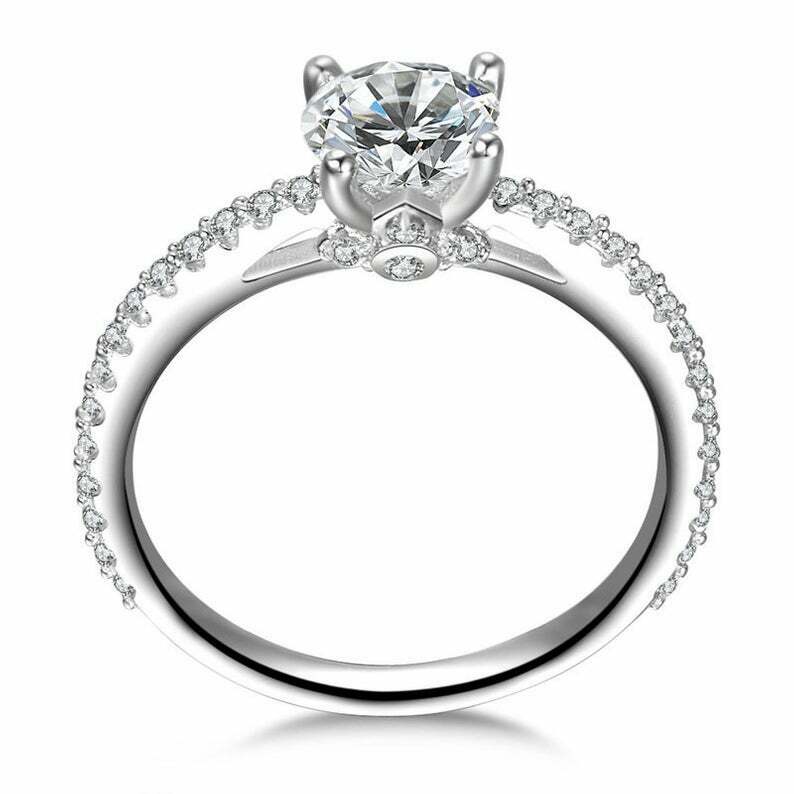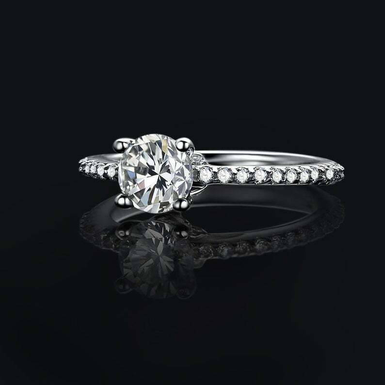 1.6ct Round Cut Diamond 4 Prong Solitaire with Accent Ring 14k White Gold Finish