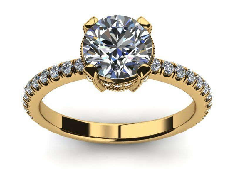 1.6ct Round Cut Diamond Accent Crown Solitaire Women Ring 14k Yellow Gold Finish