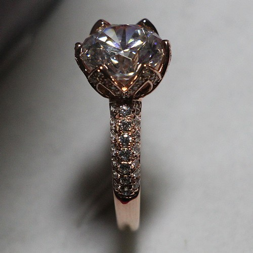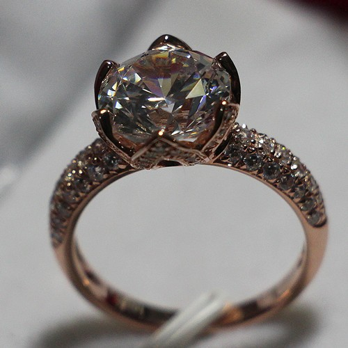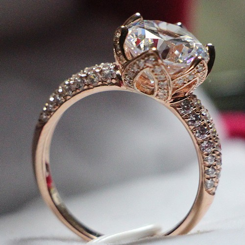 1.6ct Round Cut Diamond Engagement Ring 14k Rose Gold Finish Lotus Flower Style