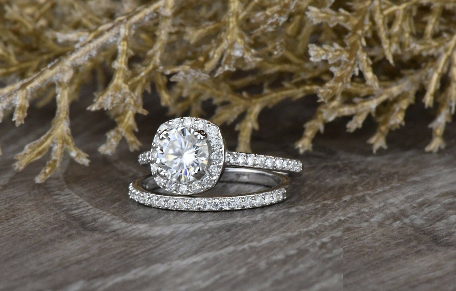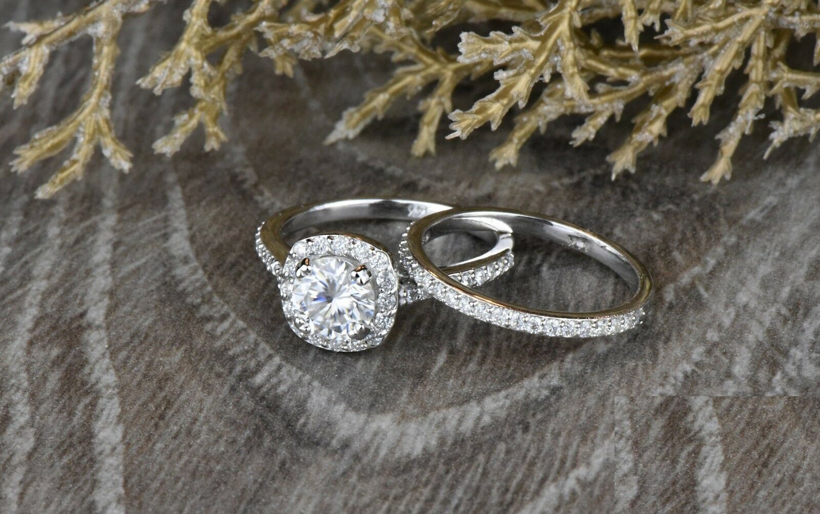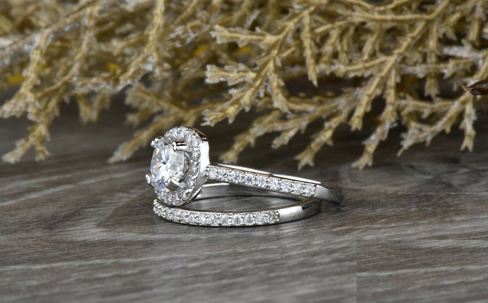 1.6ct Round Cut Diamond Engagement Ring 14k White Gold Finish Halo Bridal Set