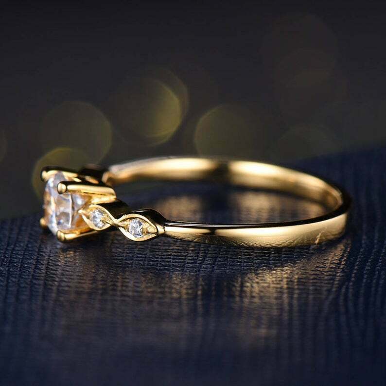 1.6ct Round Cut Diamond Engagement Ring 5 Stone Solitaire 14k Yellow Gold Finish