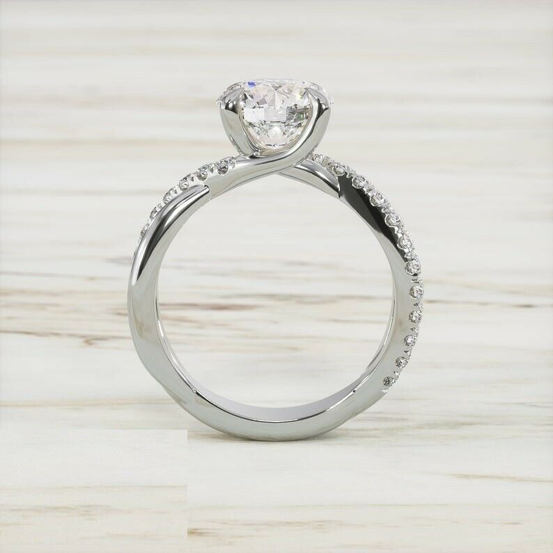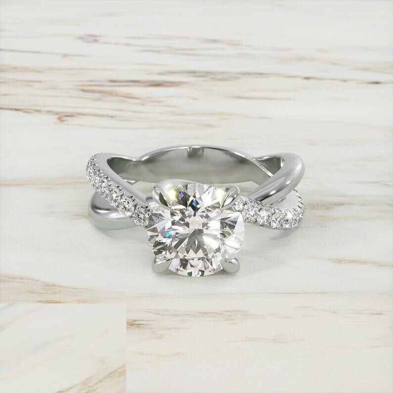 1.6ct Round Cut Diamond Engagement Ring Cross Split Shank 14k White Gold Finish