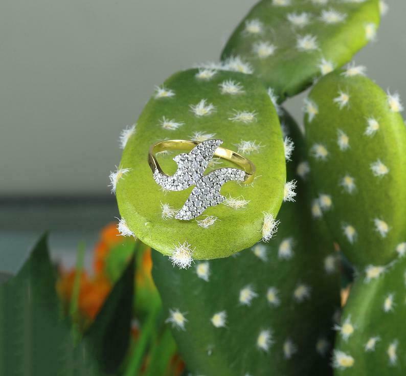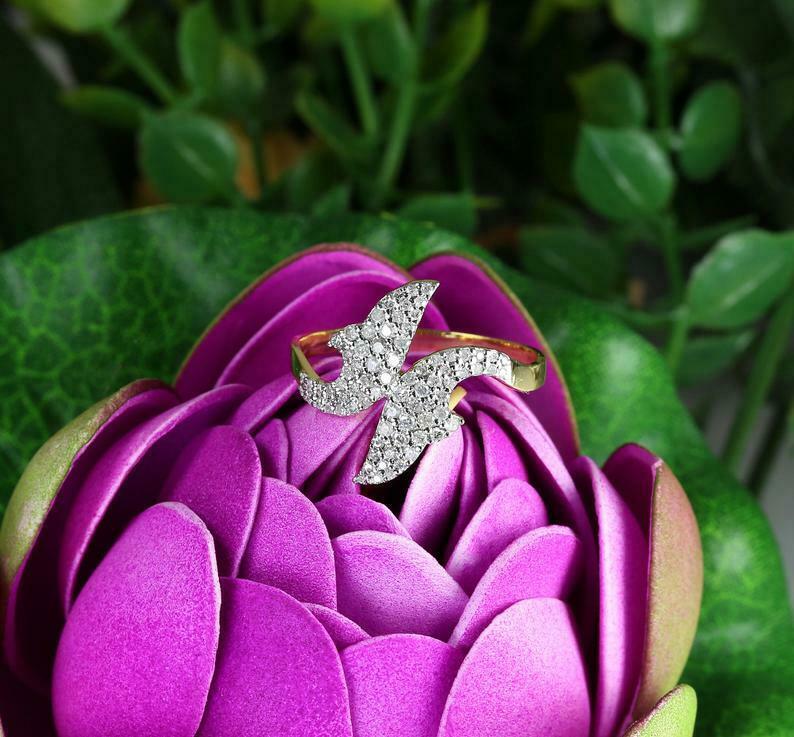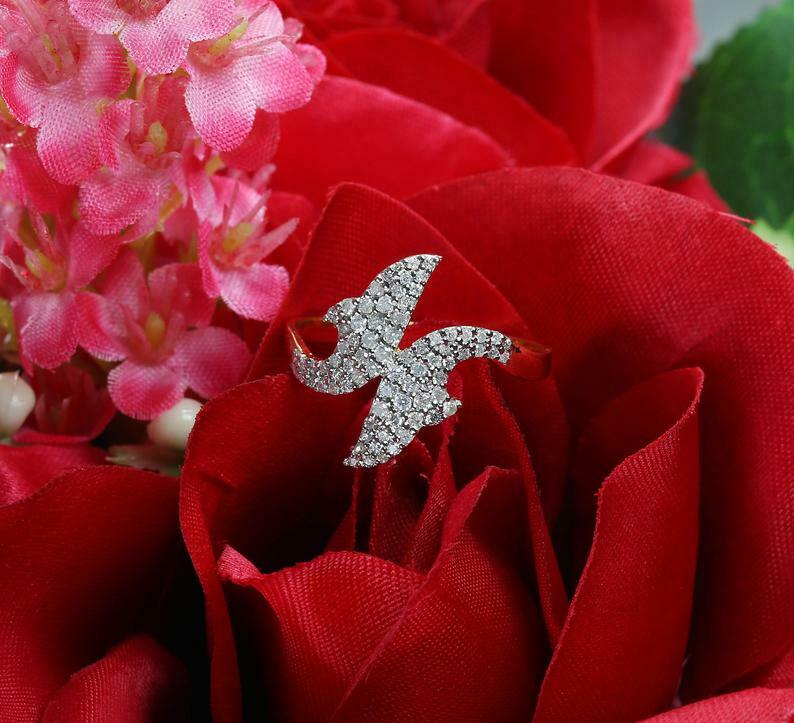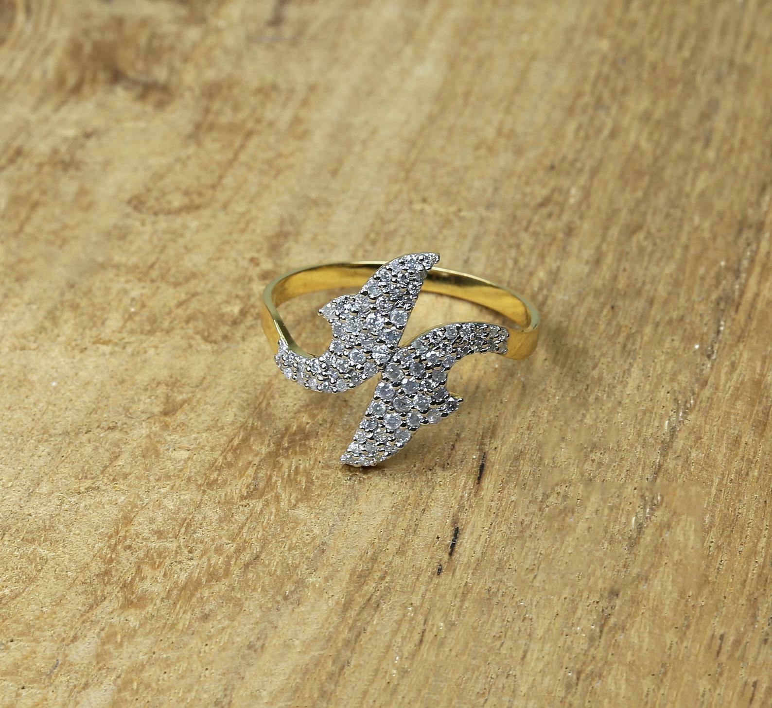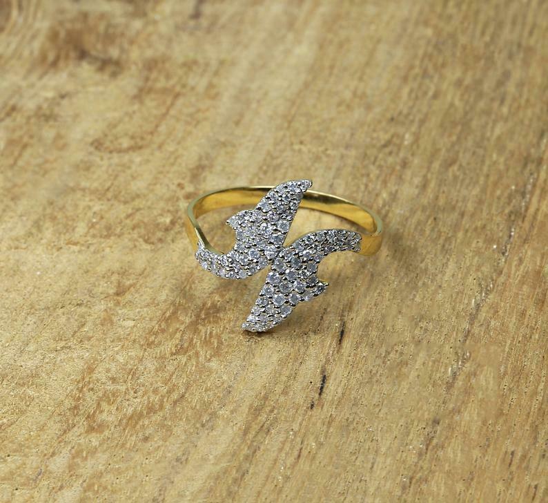1.6ct Round Cut Diamond Engagement Ring Dual Dolphin Fish 14k Yellow Gold Finish
