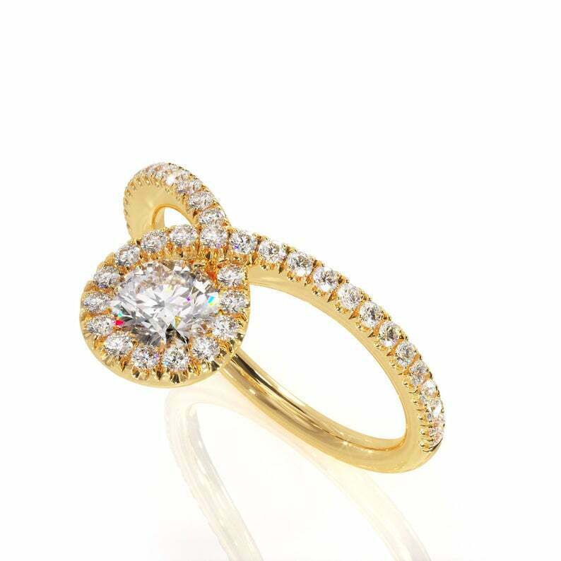 1.6ct Round Cut Diamond Engagement Ring Halo Solitaire 14k Yellow Gold Finish