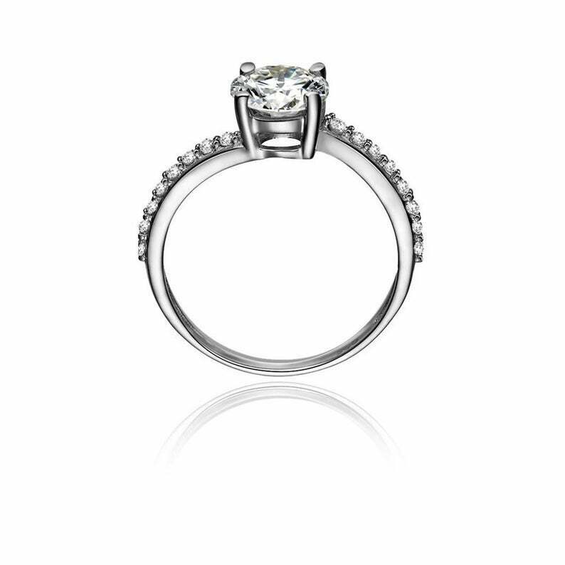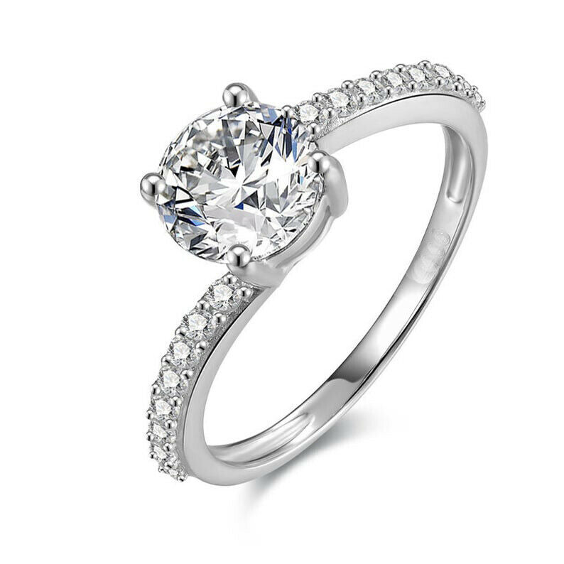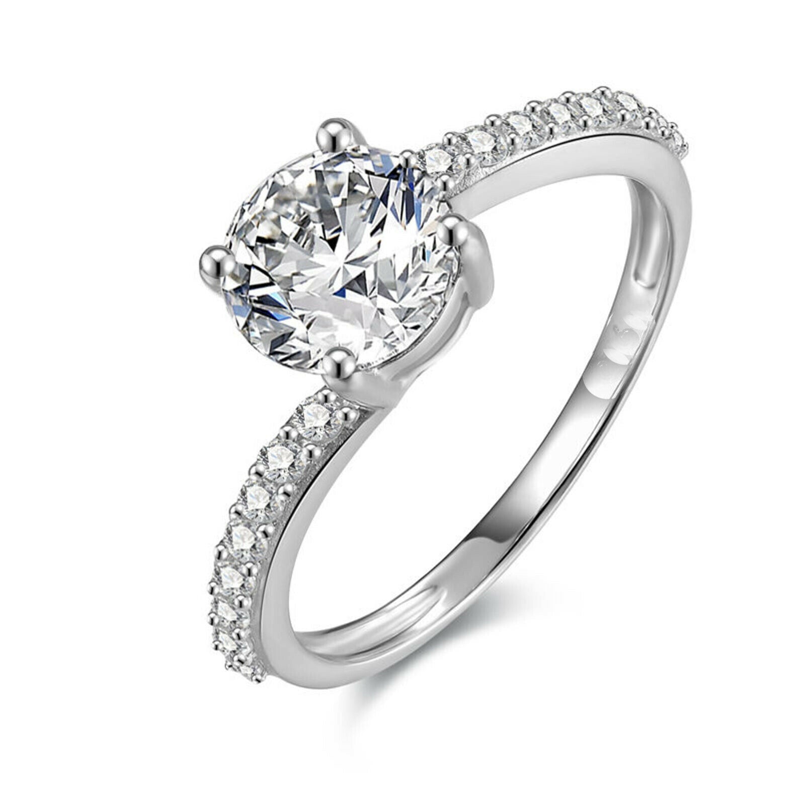 1.6ct Round Cut Diamond Engagement Ring Swirl with Accents 14k White Gold Finish
