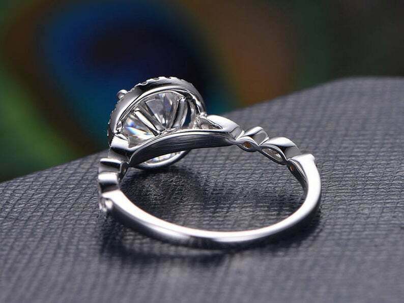 1.6ct Round Cut Diamond Halo Solitaire with Accents Ring 14k White Gold Finish