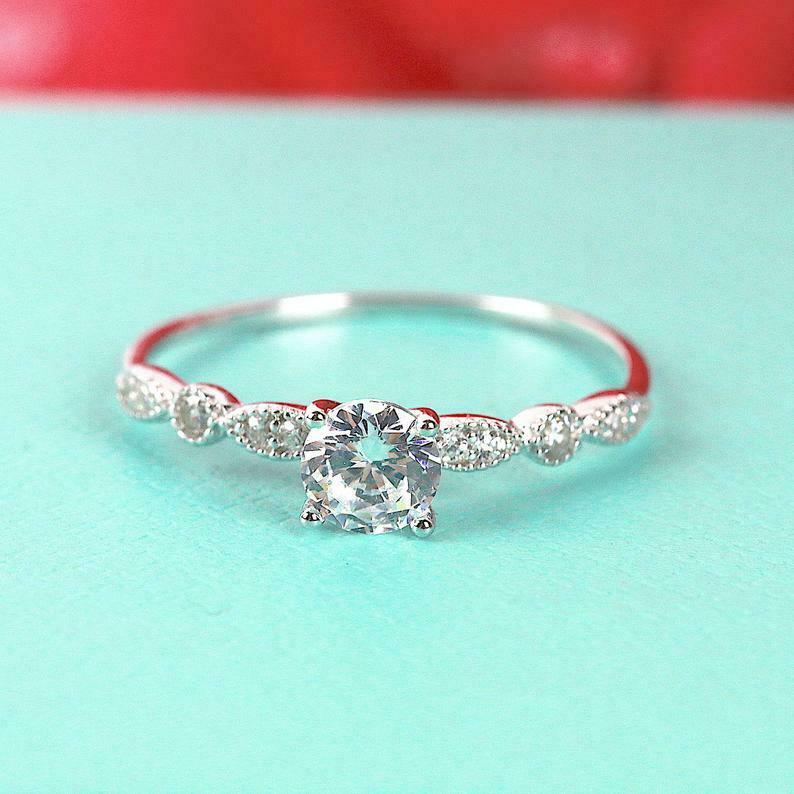 1.6ct Round Cut Diamond Milgrain Accents Engagement Ring 14k White Gold Finish