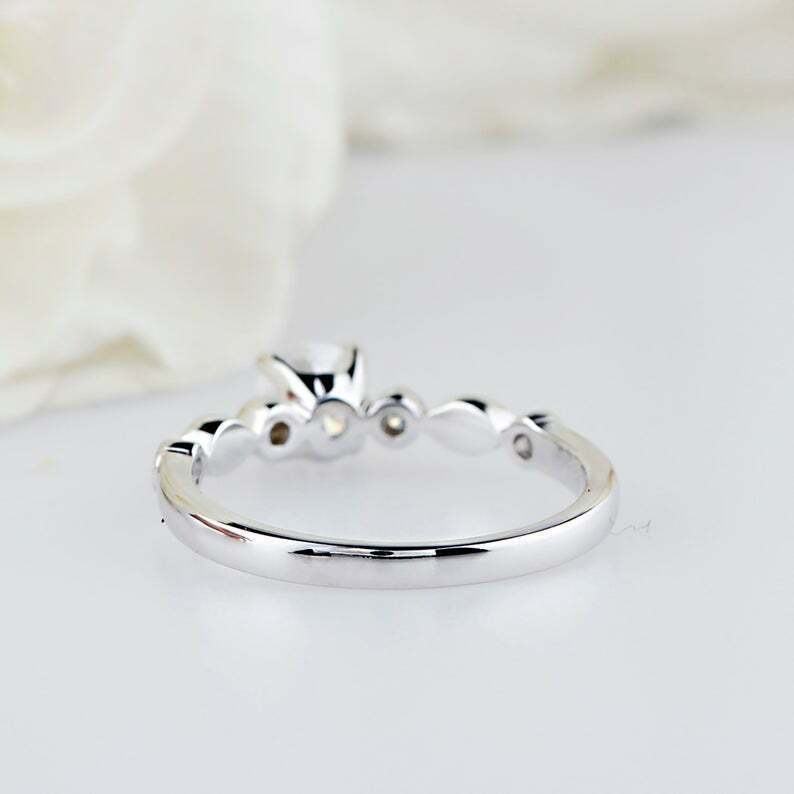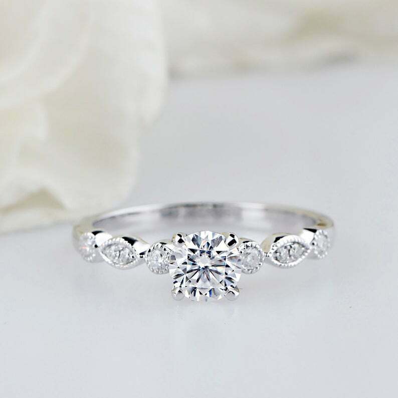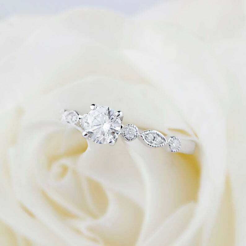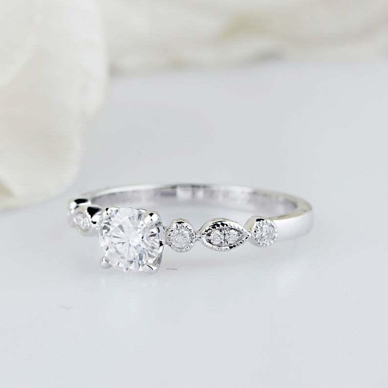1.6ct Round Cut Diamond Milgrain Solitaire with Accent Ring 14k WhiteGold Finish