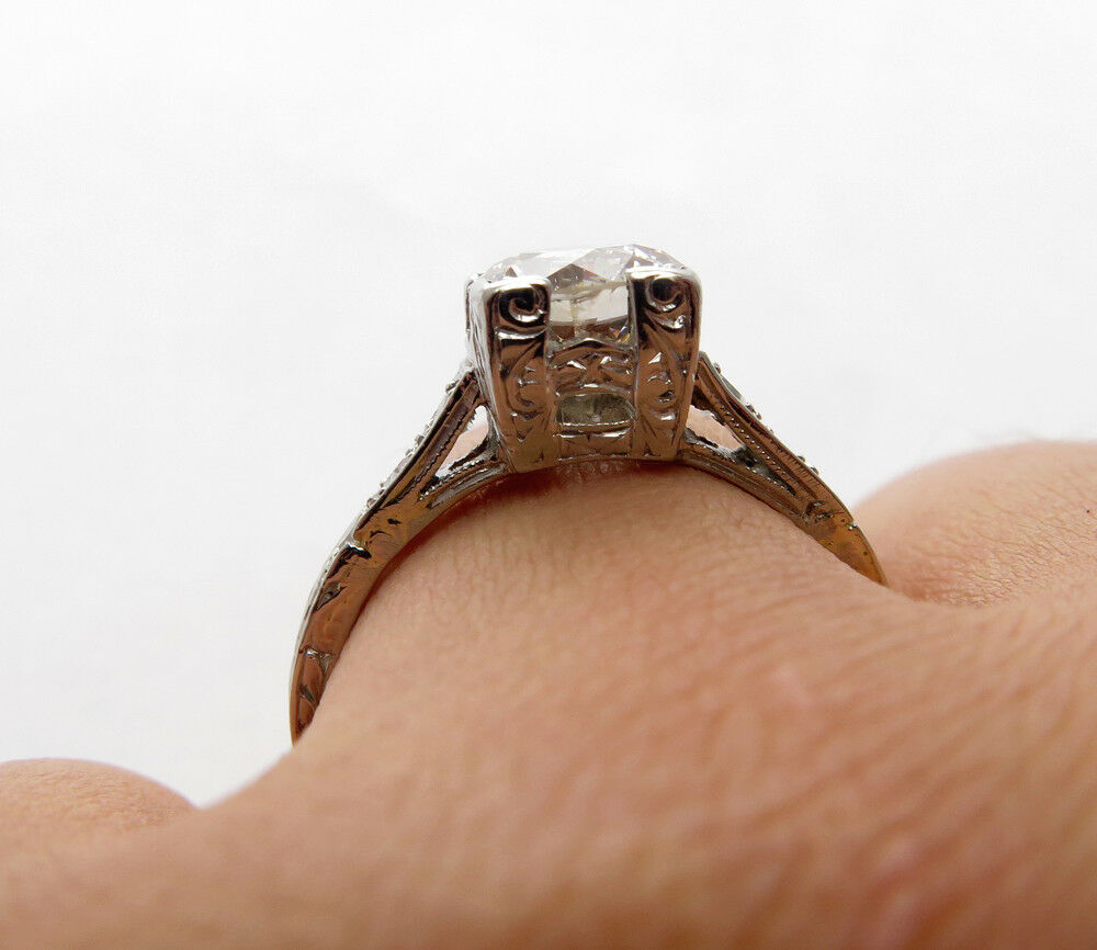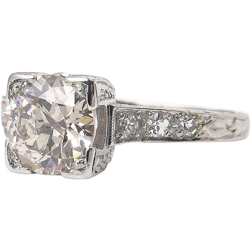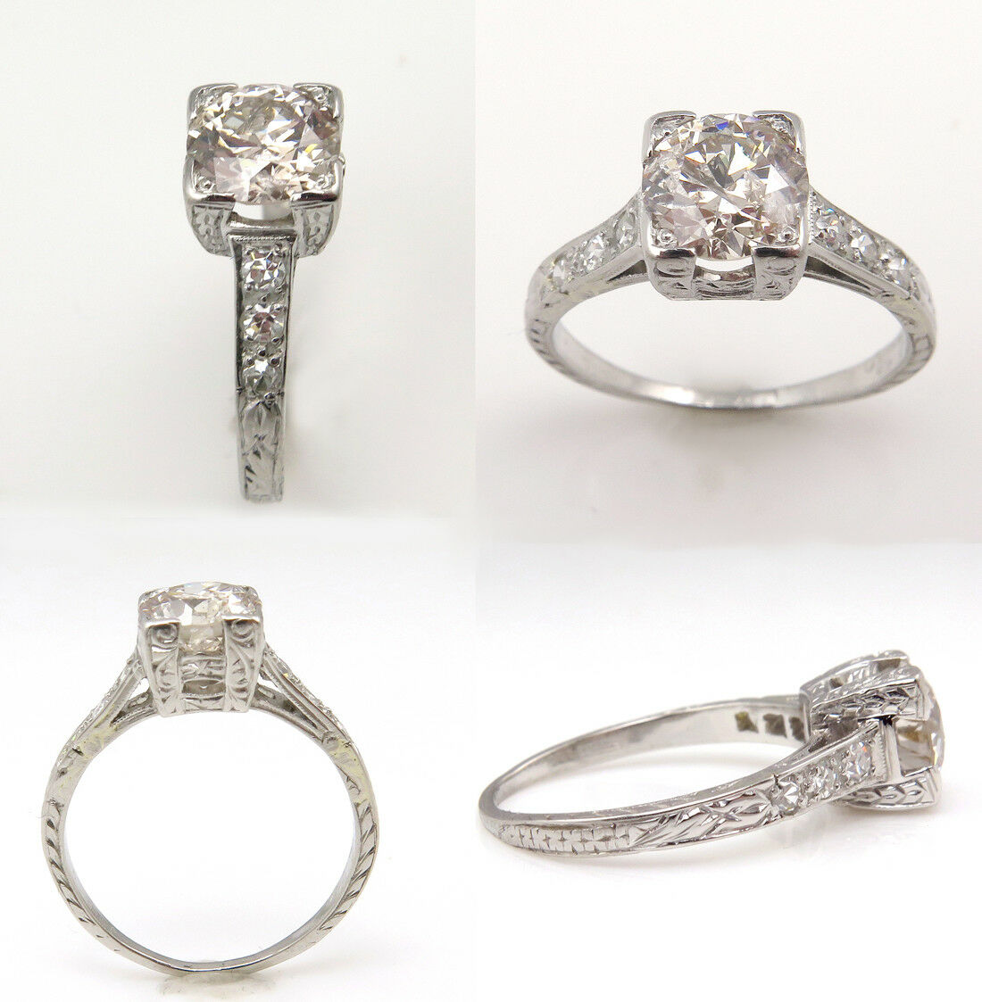 1.6Ct Round Cut Diamond Vintage Antique Engagement Ring 14K White Gold Finish