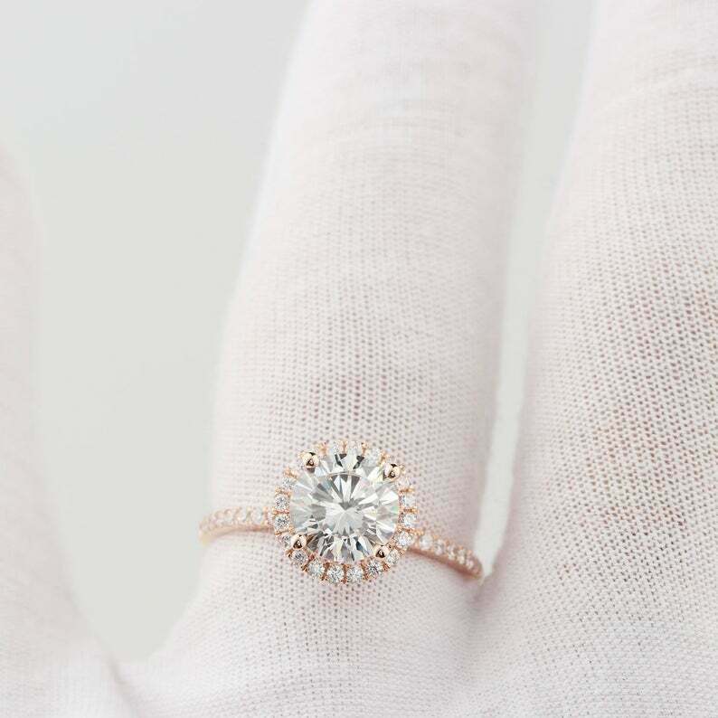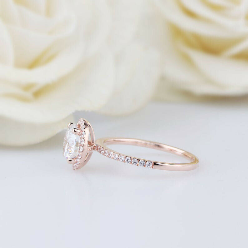 1.6ct Round Cut VVS1 Diamond Engagement Ring Halo Solitaire 14k Rose Gold Finish