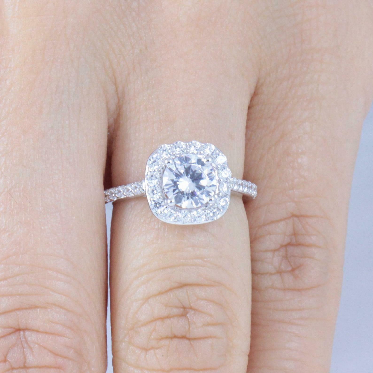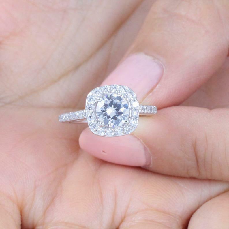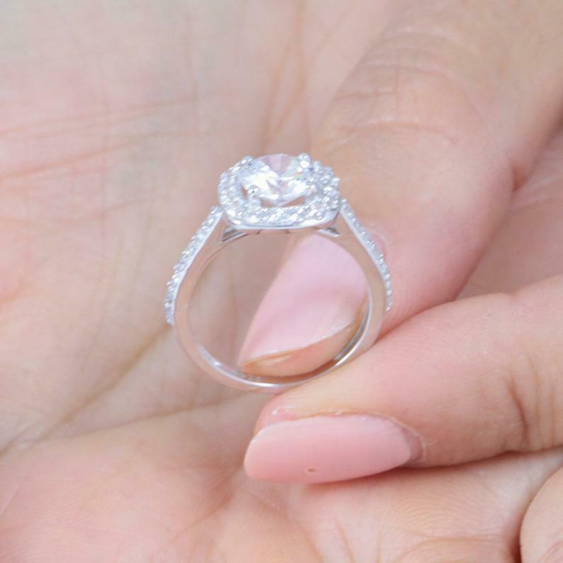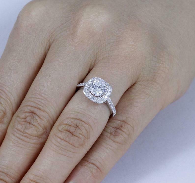 1.6ct Round Cut VVS1D Diamond Accents Halo Engagement Ring 14k White Gold Finish