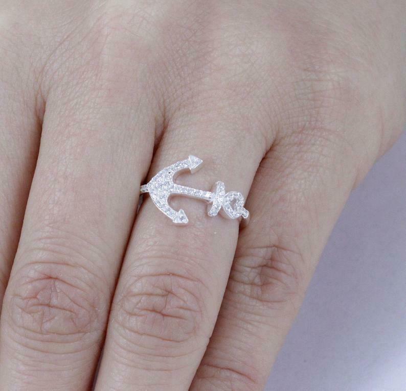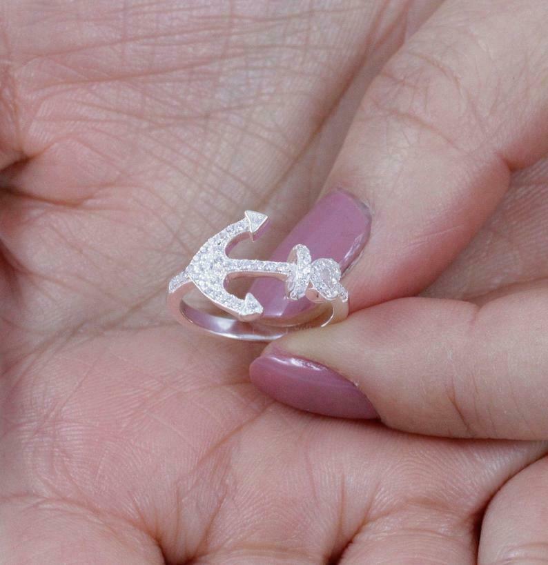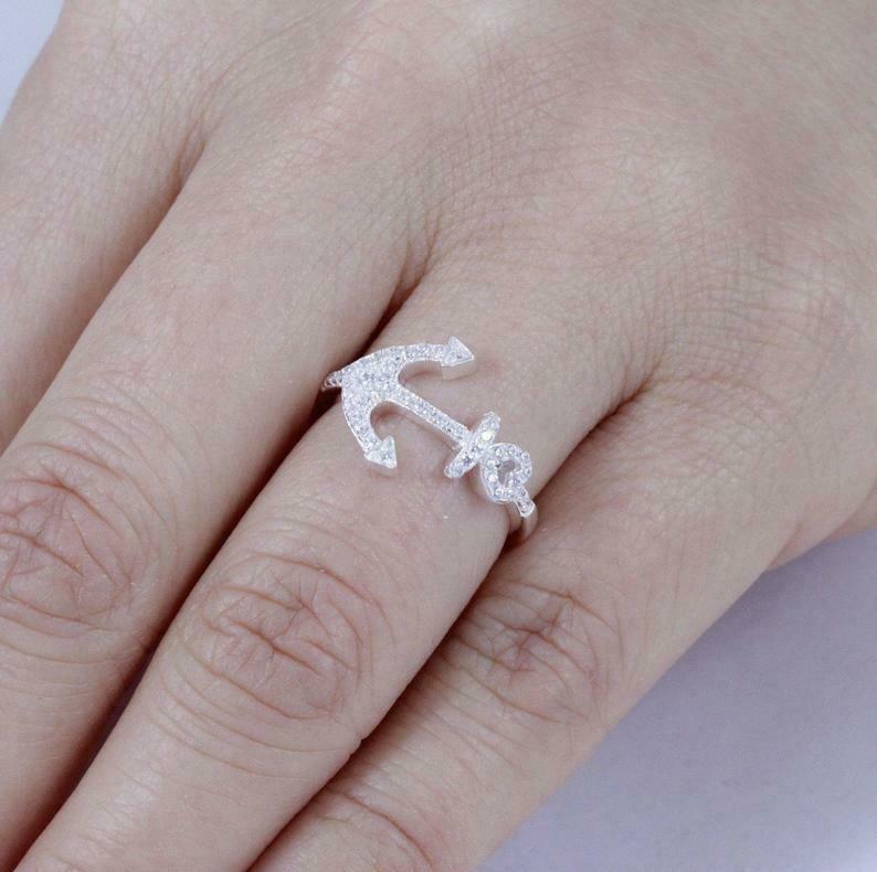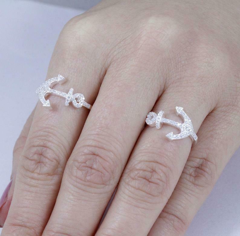 1.6ct Round Cut VVS1D Diamond Engagement Ring Anchor Navy 14k White Gold Finish