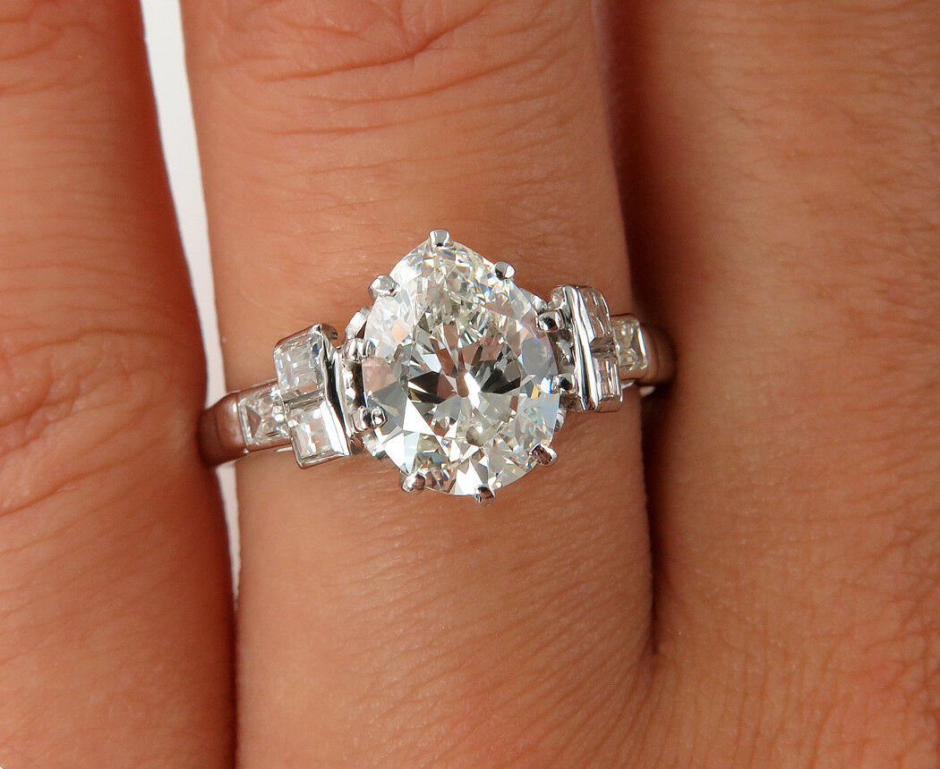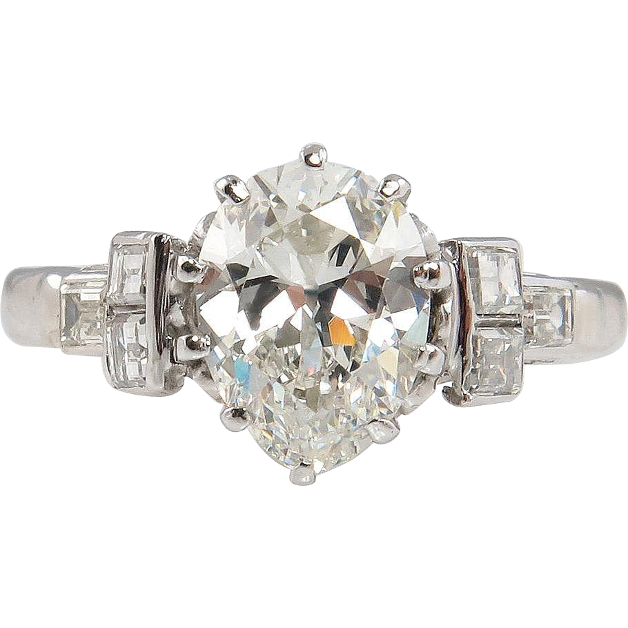 1.75Ct Pear Cut Diamond Solitaire Vintage Engagement Ring 14K White Gold Finish
